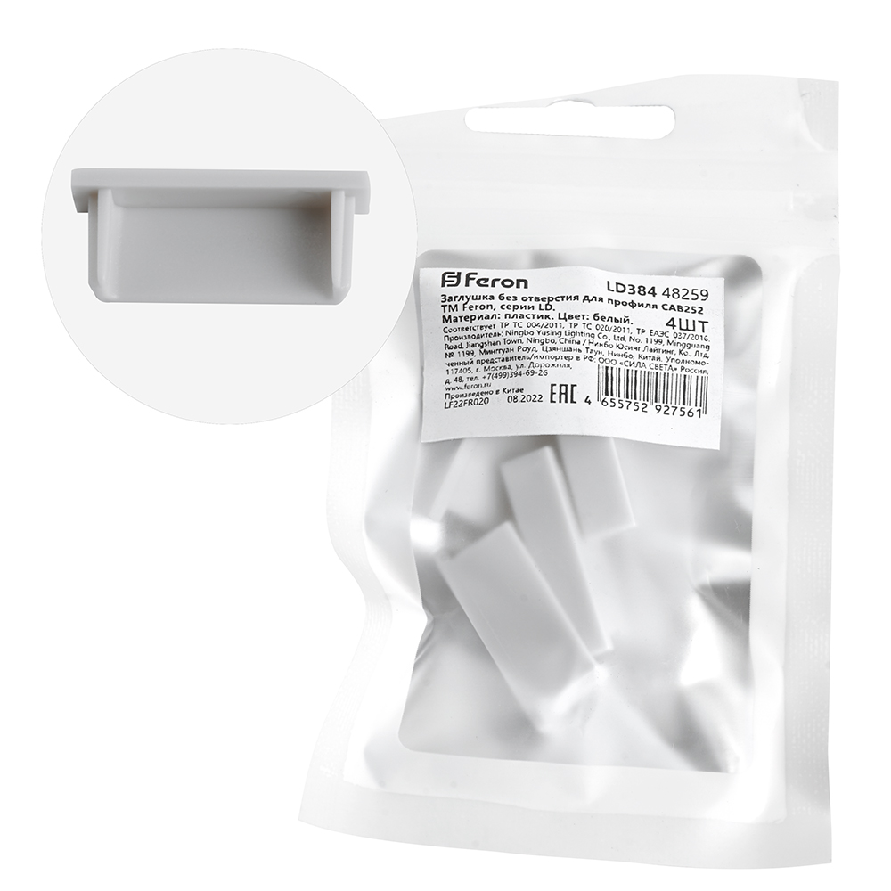 Заглушка для профиля CAB252 без отверстия алюминий (4шт) LD384, код 48259, производитель FERON