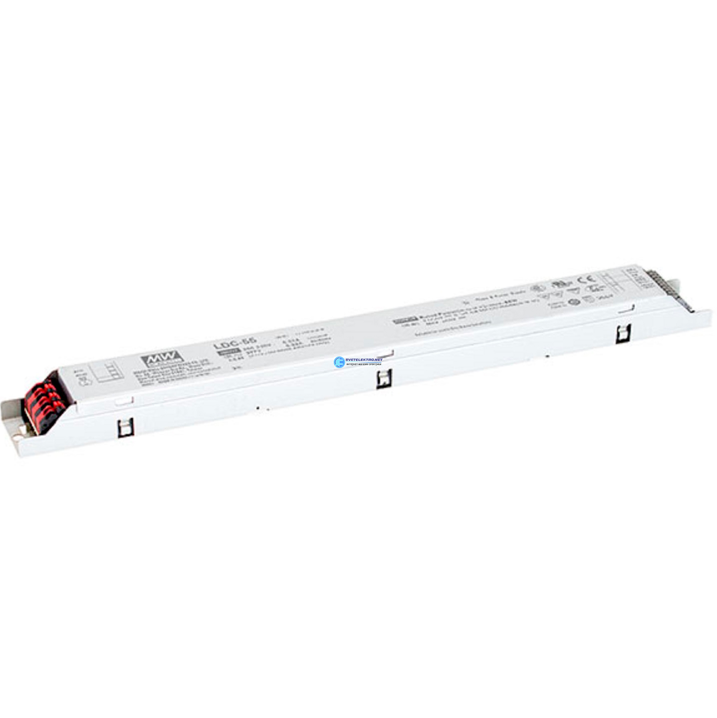 Драйвер LED, 55Вт, вход 180…295В AC, 47…63Гц/254…420В DC, ККМ, выход в режиме пост. мощности 27…56В/980…1600мА, изоляция 3750В AC, в кожухе 320х30х21,, код LDC-55DA, производитель Mean Well