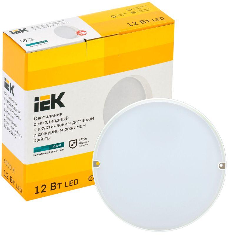 Светильник светодиодный ДПО 2013Д 12Вт IP54 4000К дежурный режим круг белый с акустическим датчиком, код LDPO3-2013D-12-4000-K01, производитель IEK