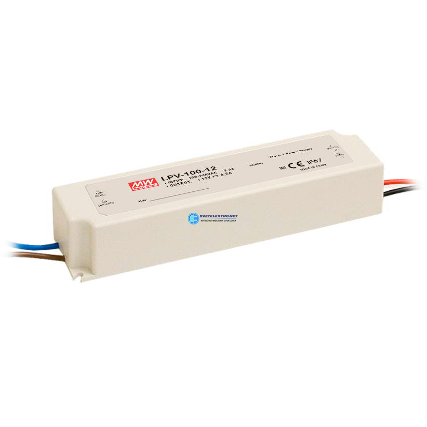 Драйвер AC-DC, 100Вт, IP67, вход 90-264В AC, 47-63Гц,120-370В DC выход 24В,4.2A, в кожухе, код LPV-100-24, производитель Mean Well