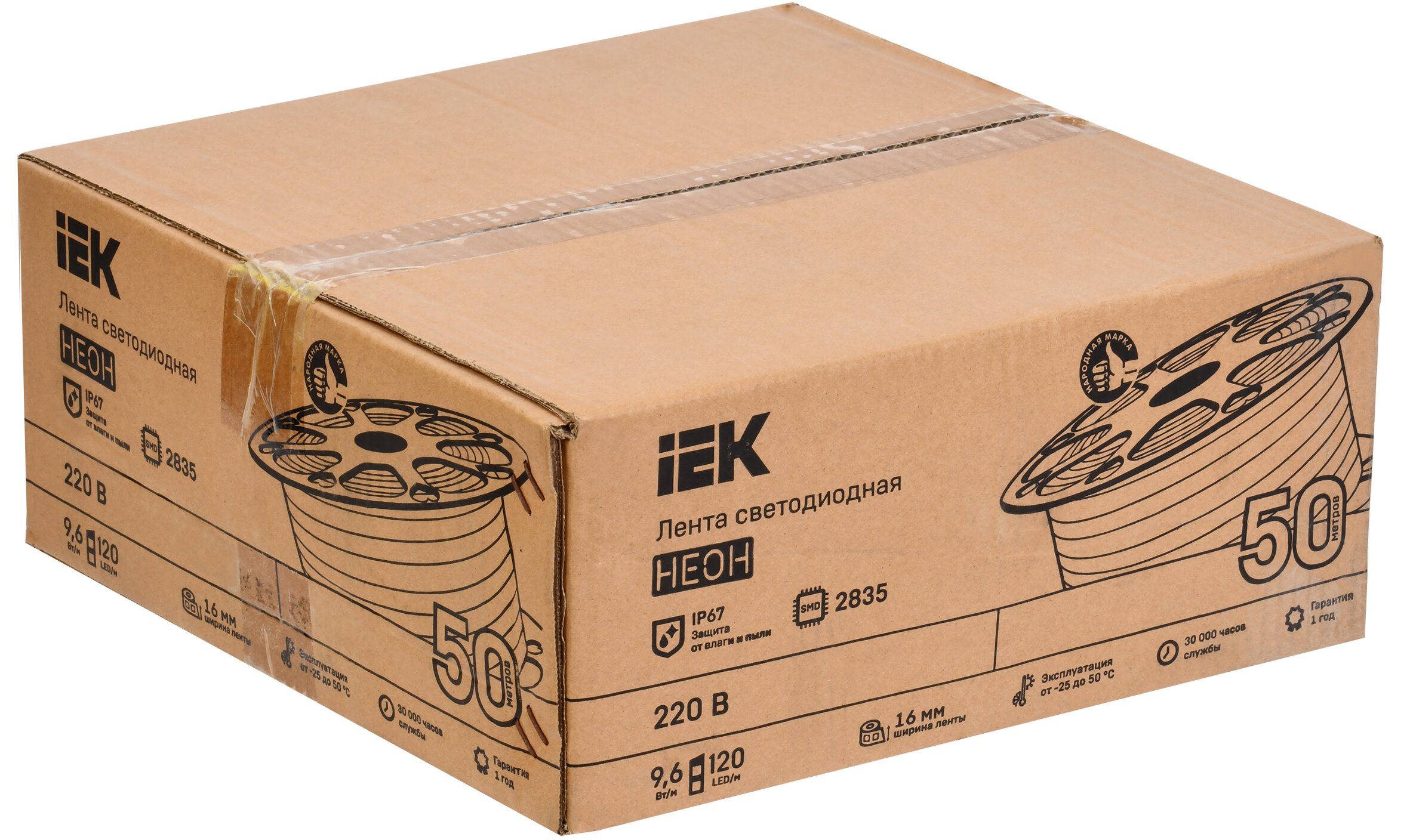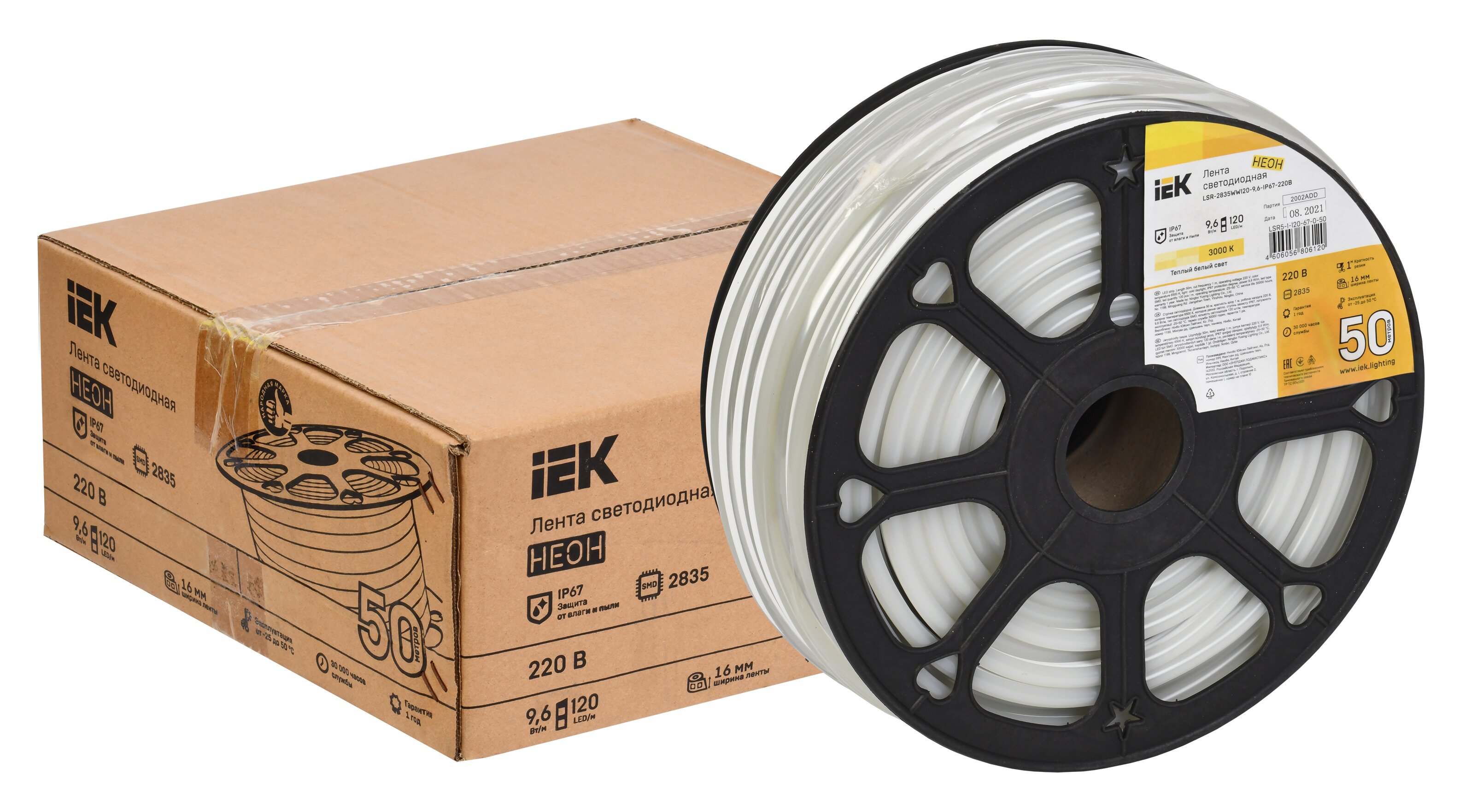 Лента светодиодная "неон" Белый теплый 3000К LSR-2835WW120-9.6-IP67-220В (уп.50м), код LSR5-1-120-67-0-50, производитель IEK