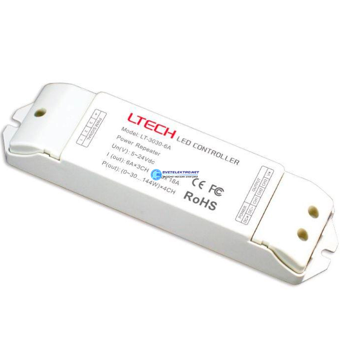 Усилитель для подключения светодиодной ленты RGB Varton 5-24 VDC IP20 175х44х0мм (LTECH) канала по 144ВТ, код LT-3030-6A, производитель Вартон