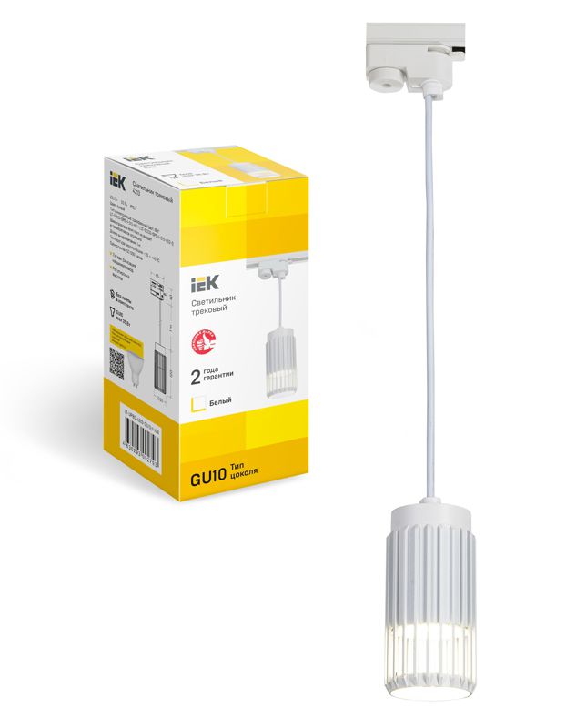 Светильник на шинопроводе декоративный трековый спот подвесной под лампу белый, код LT-UPB0-4213-GU10-1-K01, производитель IEK
