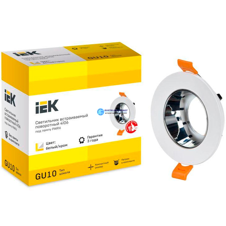 LIGHTING Светильник встраиваемый поворотный под лампу белый/хром пластик, код LT-UVB0-4106-GU10-1-K23, производитель IEK