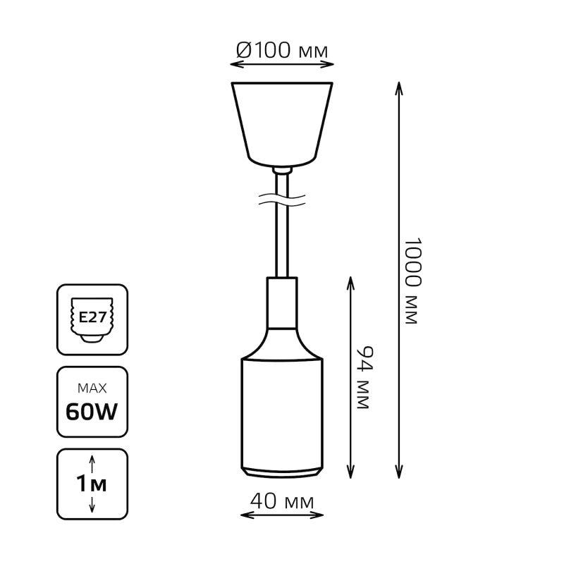 | Преимущества: | Стильный дизайн для современного интерьера|Подходит для ламп с цоколем E27, обеспечивая универсальность|Длинный подвес для широких возможностей размещения|Идеален для лофт и минималистичных стилей интерьера|Легкая установка и качественные материалы для длительного использования: |