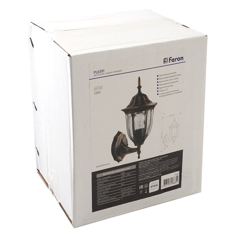 Светильник НБУ-60w вверх Е27 IP44 черное золото PL6301, код 11897, производитель FERON