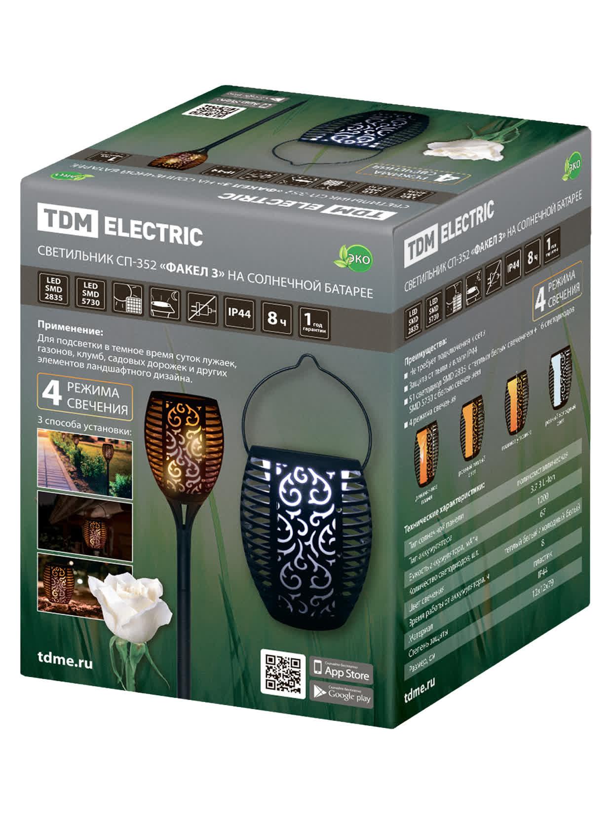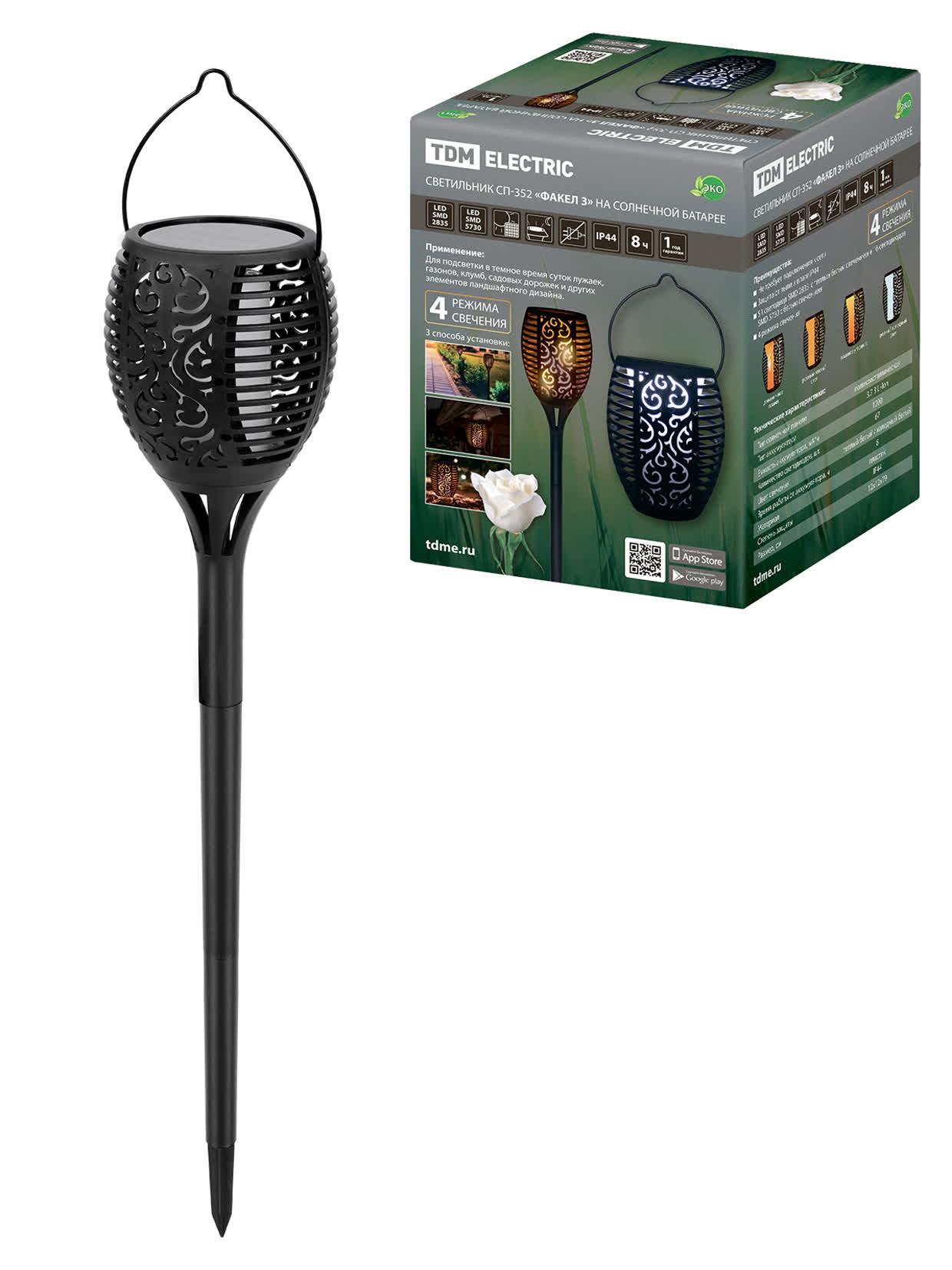 "Светильник СП-351 ""Факел 2"" на солнечной батарее, 12х12х79 см, пластик, черный, 54 LED,, код SQ0330-0178, производитель TDM