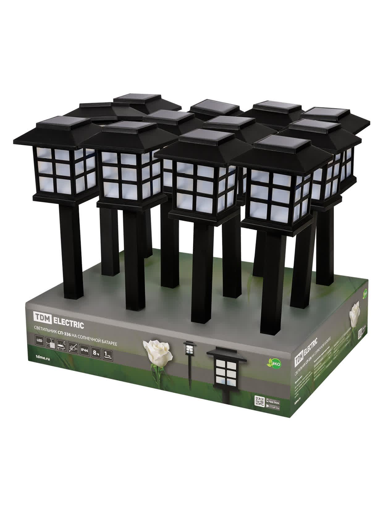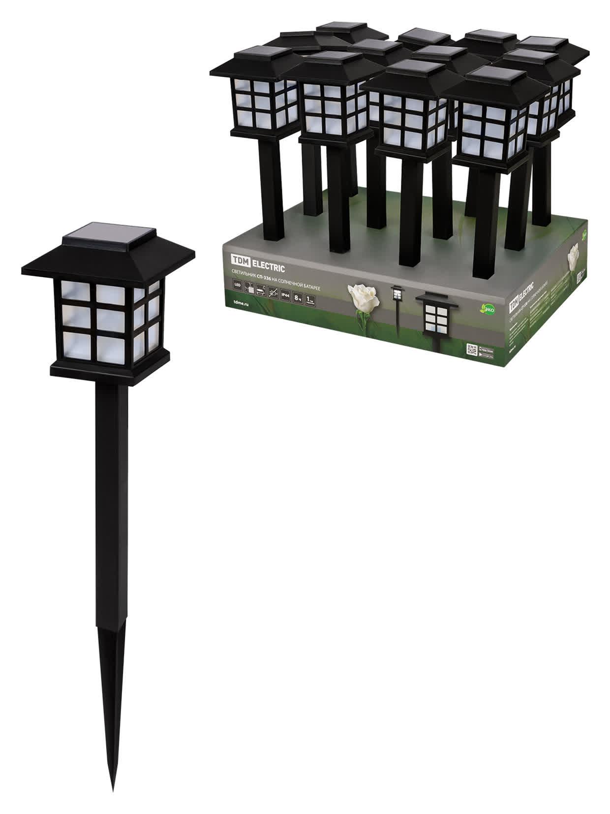 Светильник на солнечной батарее СП-336, 8,5 х 8,5 х 36 см, пластик, черный, код SQ0330-0180, производитель TDM