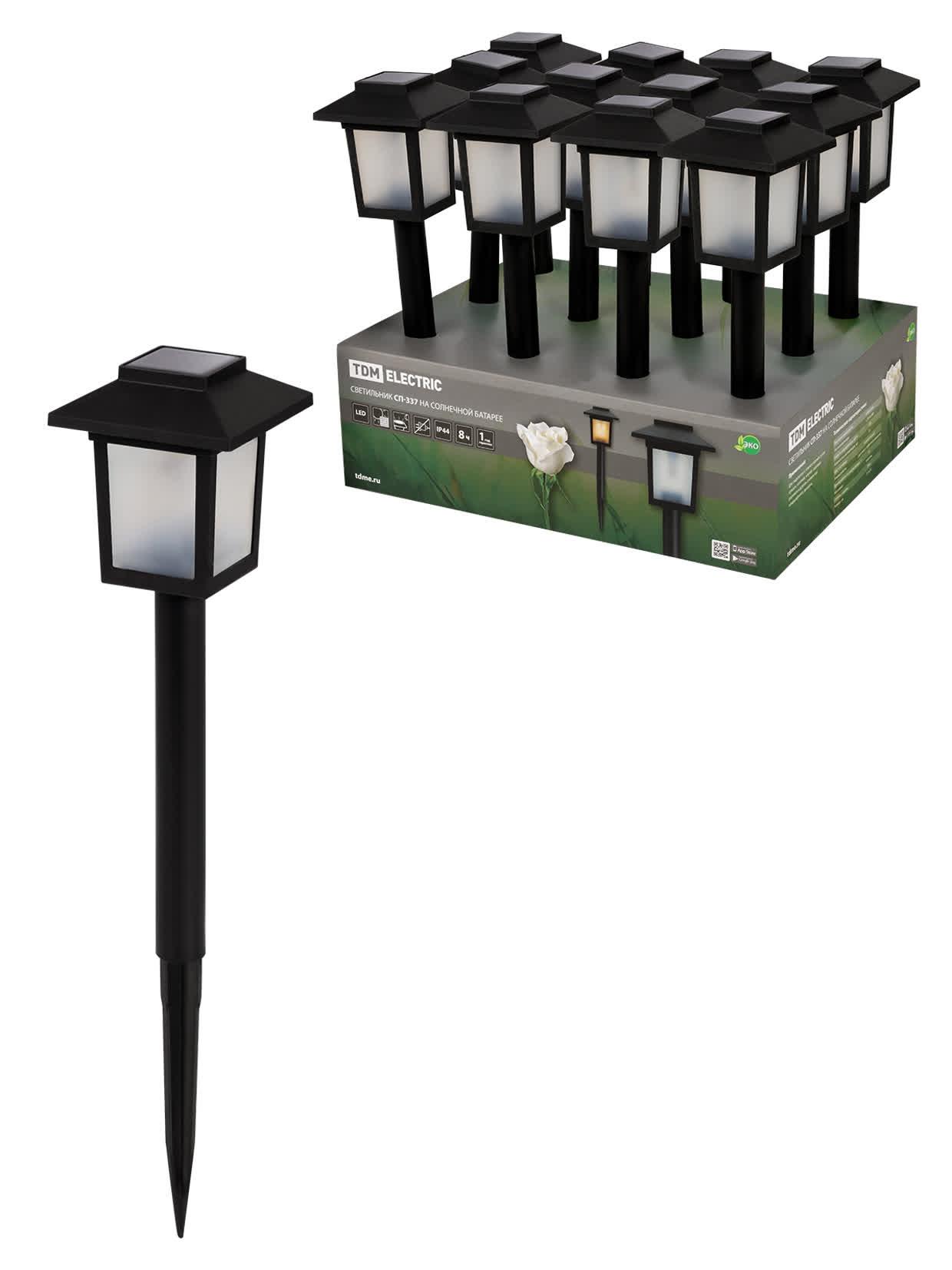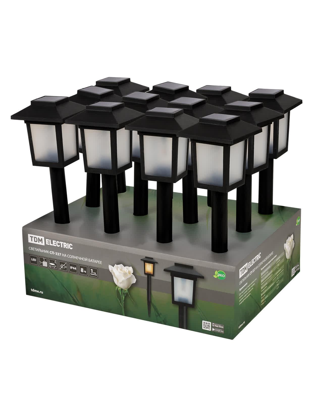 Светильник на солнечной батарее СП-337, 7 х 7 х 34 см, пластик, черный, 10 LED, код SQ0330-0188, производитель TDM
