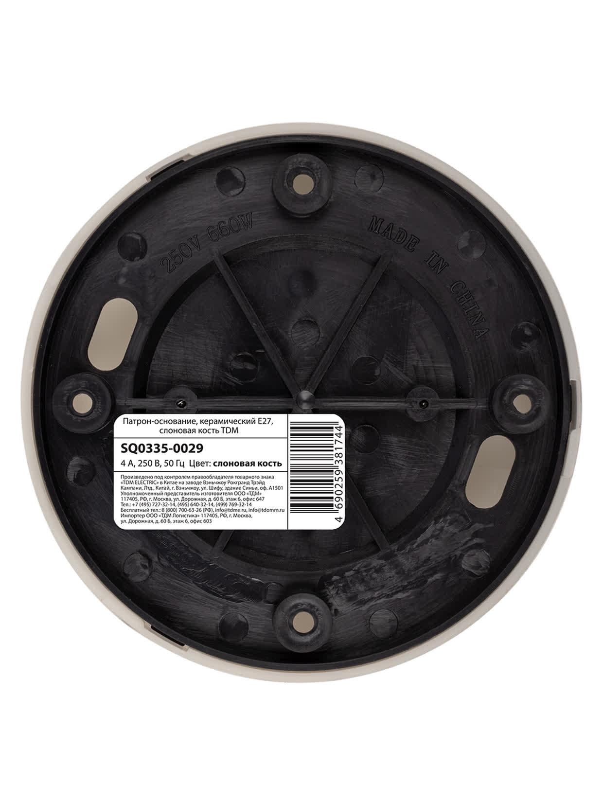 Патрон основание керамический E27 слоновая кость SQ0335-0029 TDM