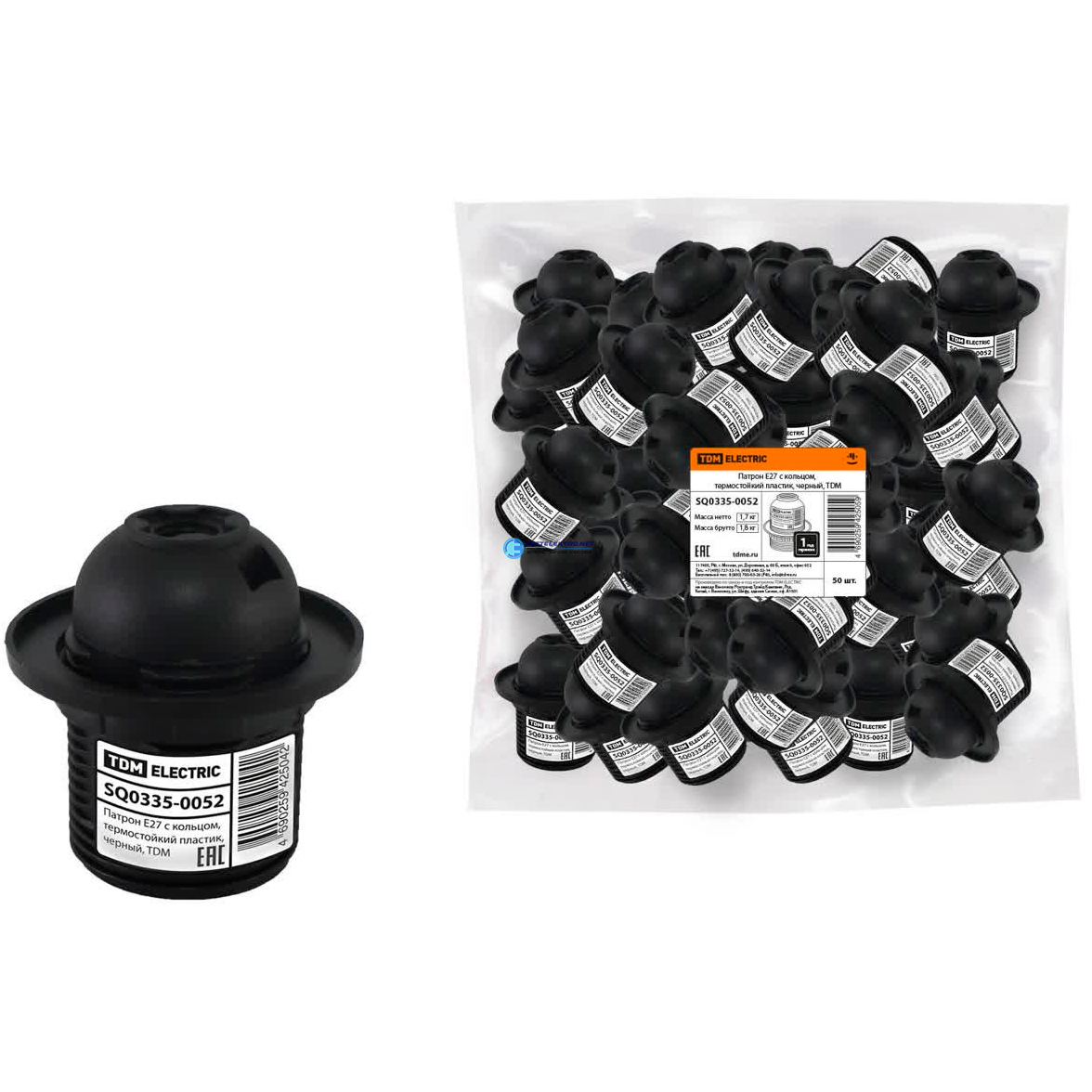 Патрон Е27 с кольцом термостойкий пластик черный, код SQ0335-0052, производитель TDM
