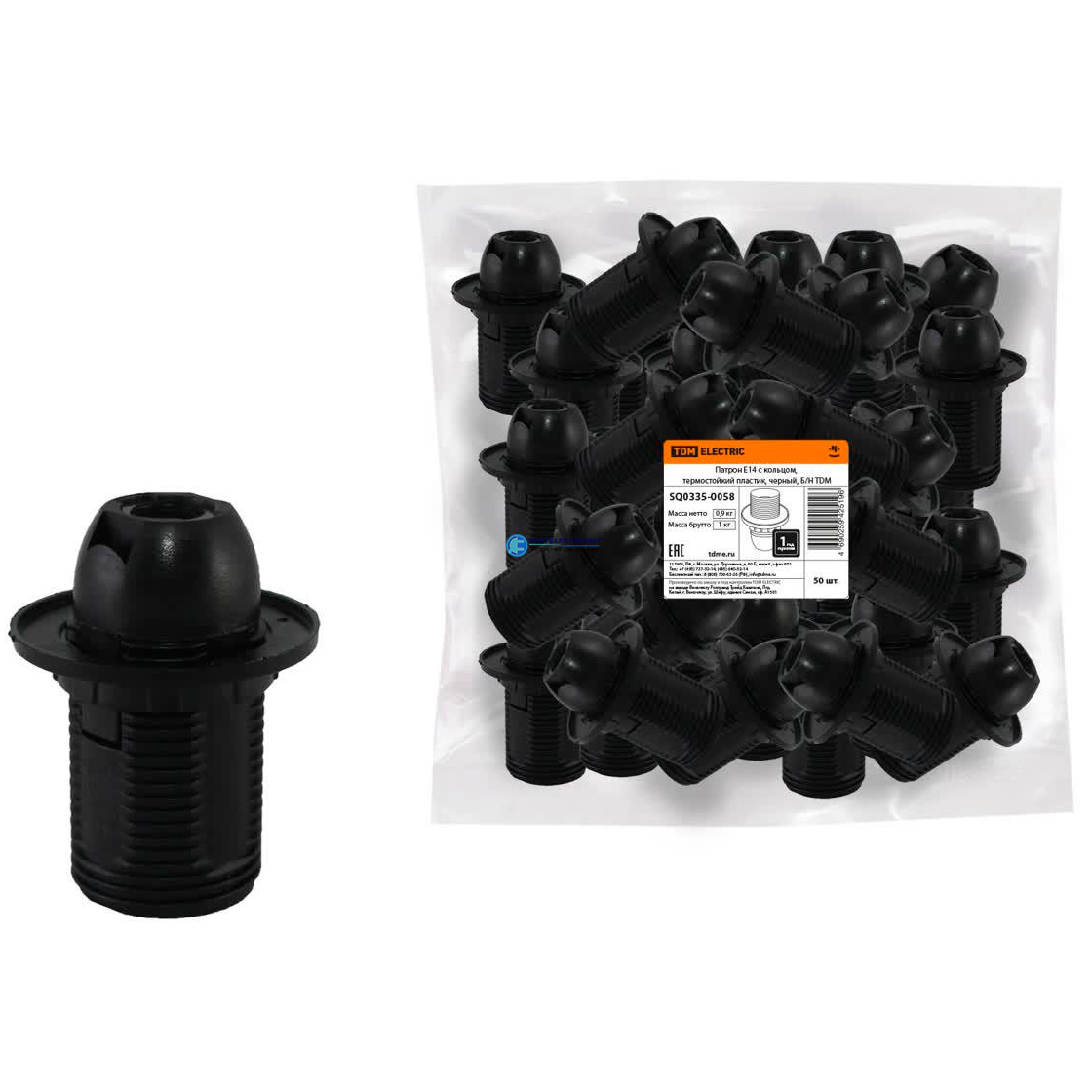 Патрон Е14 с кольцом термостойкий пластик черный, код SQ0335-0058, производитель TDM