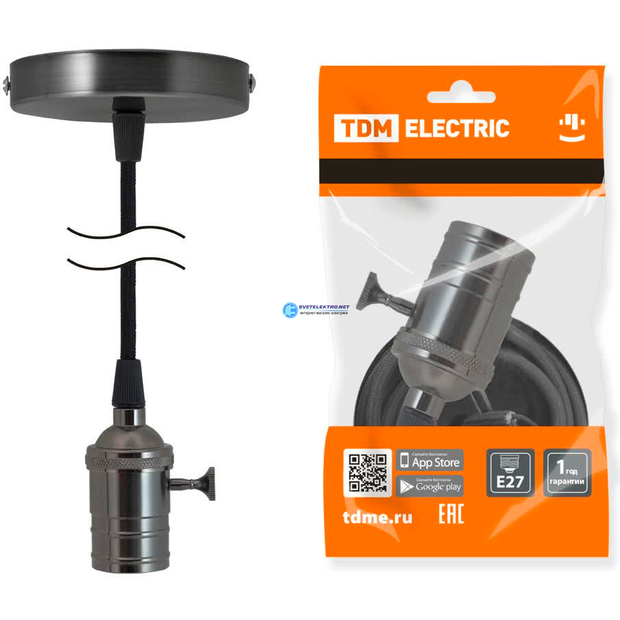 Патрон Е27 с выключателем с подвесом 1 м металлический Лофт черный, код SQ0335-0073, производитель TDM