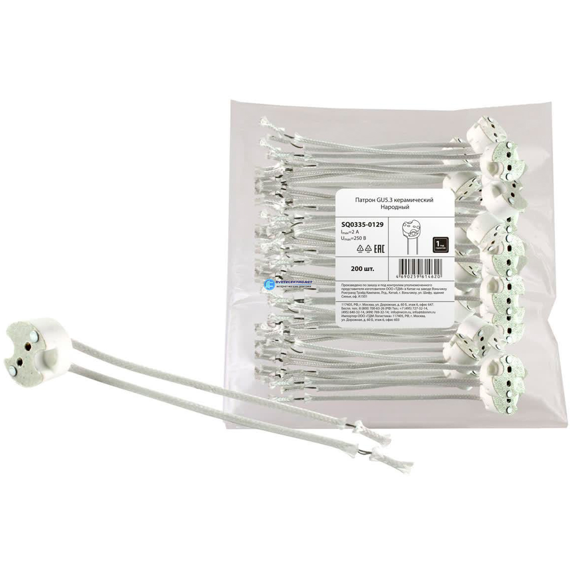 Патрон керамический GU5.3, код SQ0335-0129, производитель TDM
