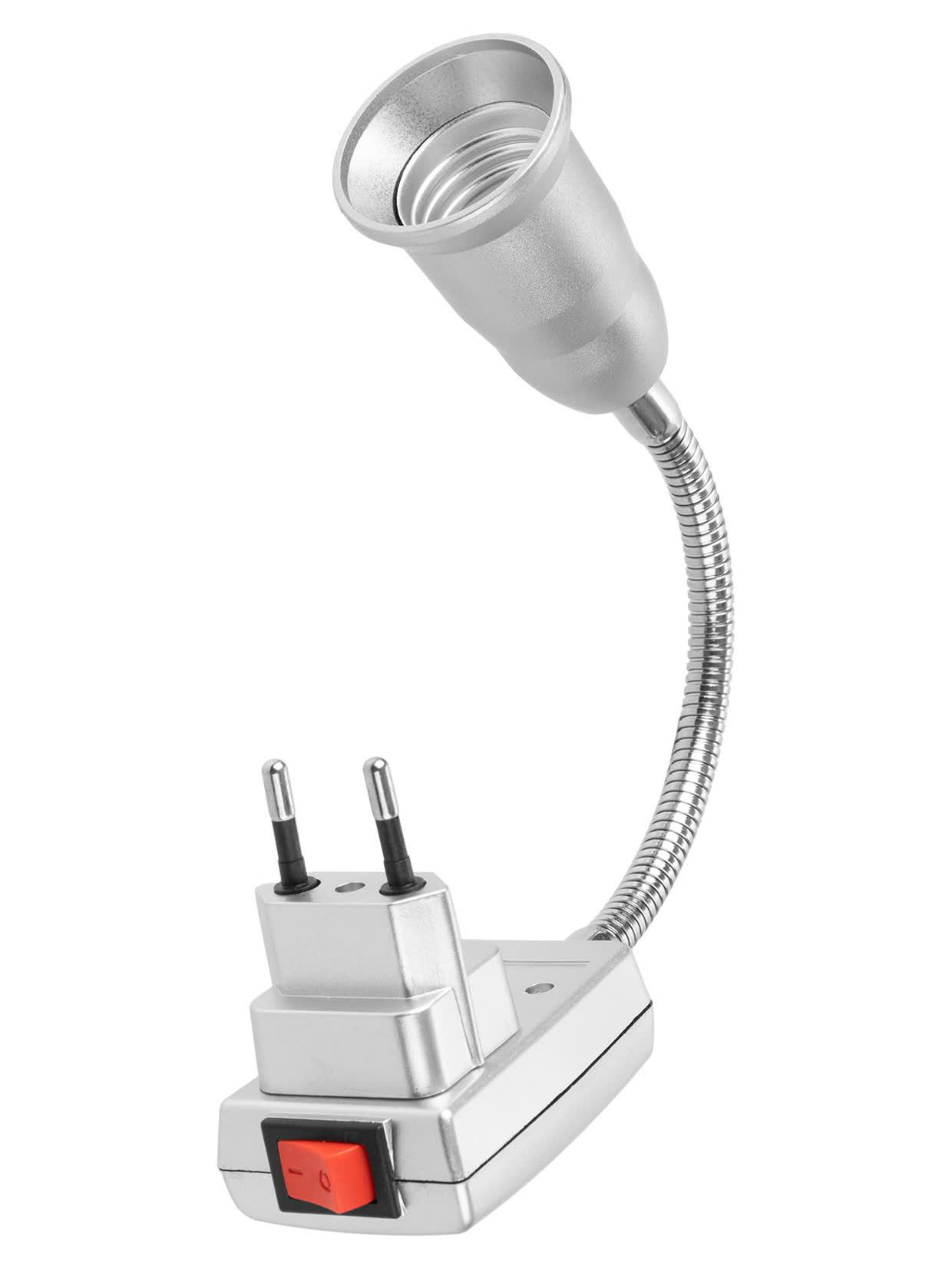 Переходник вилка Е27 гибкий 150 мм с выключателем серебро SQ0335-1029 TDM