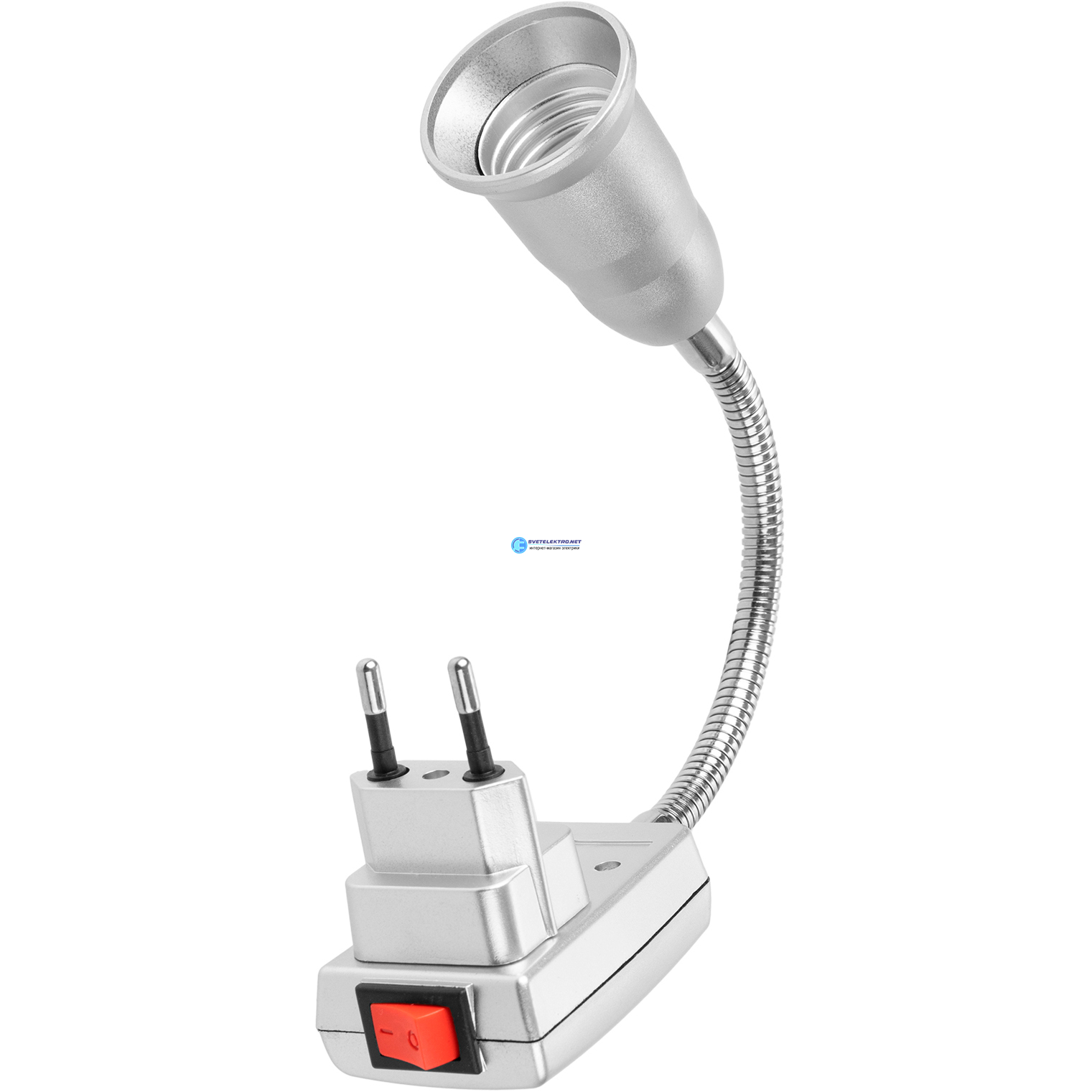 Переходник вилка Е27 гибкий 150 мм с выключателем серебро, код SQ0335-1029, производитель TDM