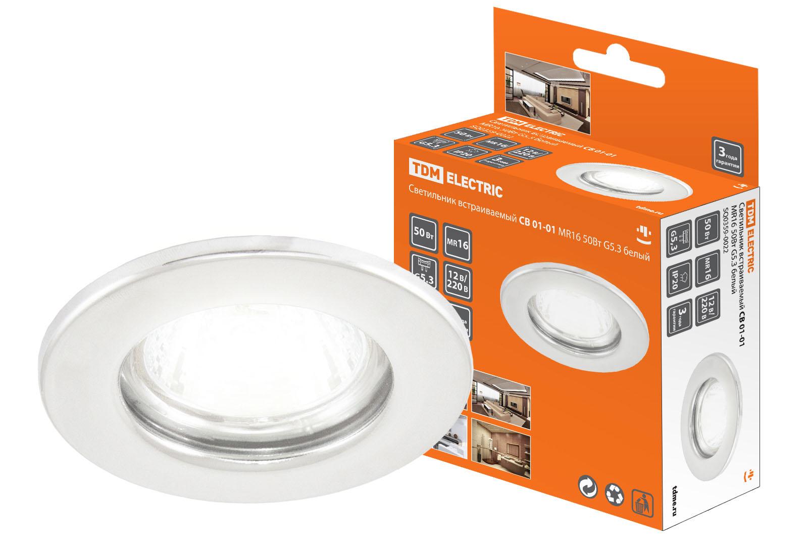Светильник встраиваемый СВ 01-01 MR16 50 Вт GU5.3 белый, код SQ0359-0022, производитель TDM