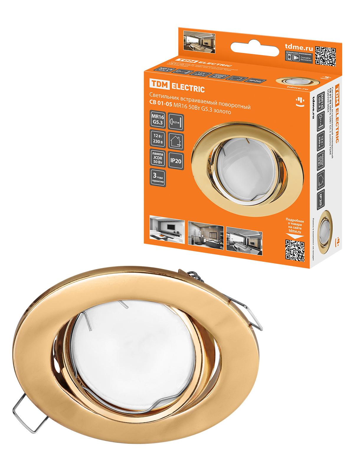 Светильник встраиваемый GU5.3 50вт поворотный СВ 01-05 MR16 золото, код SQ0359-0064, производитель TDM