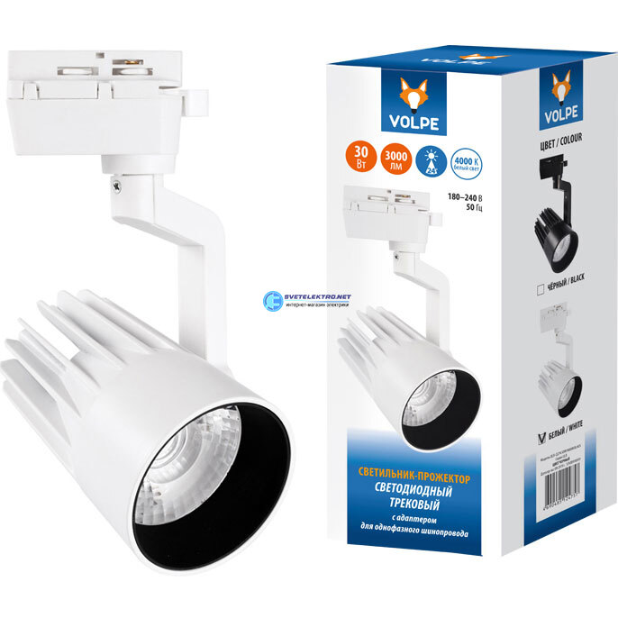 Светильник-прожектор ULB-Q274 30W/4000К WHITE светодиодный трековый 3000 Лм Белый свет (4000К) Корпус белый ТМ Volpe, код UL-00005925, производитель Uniel
