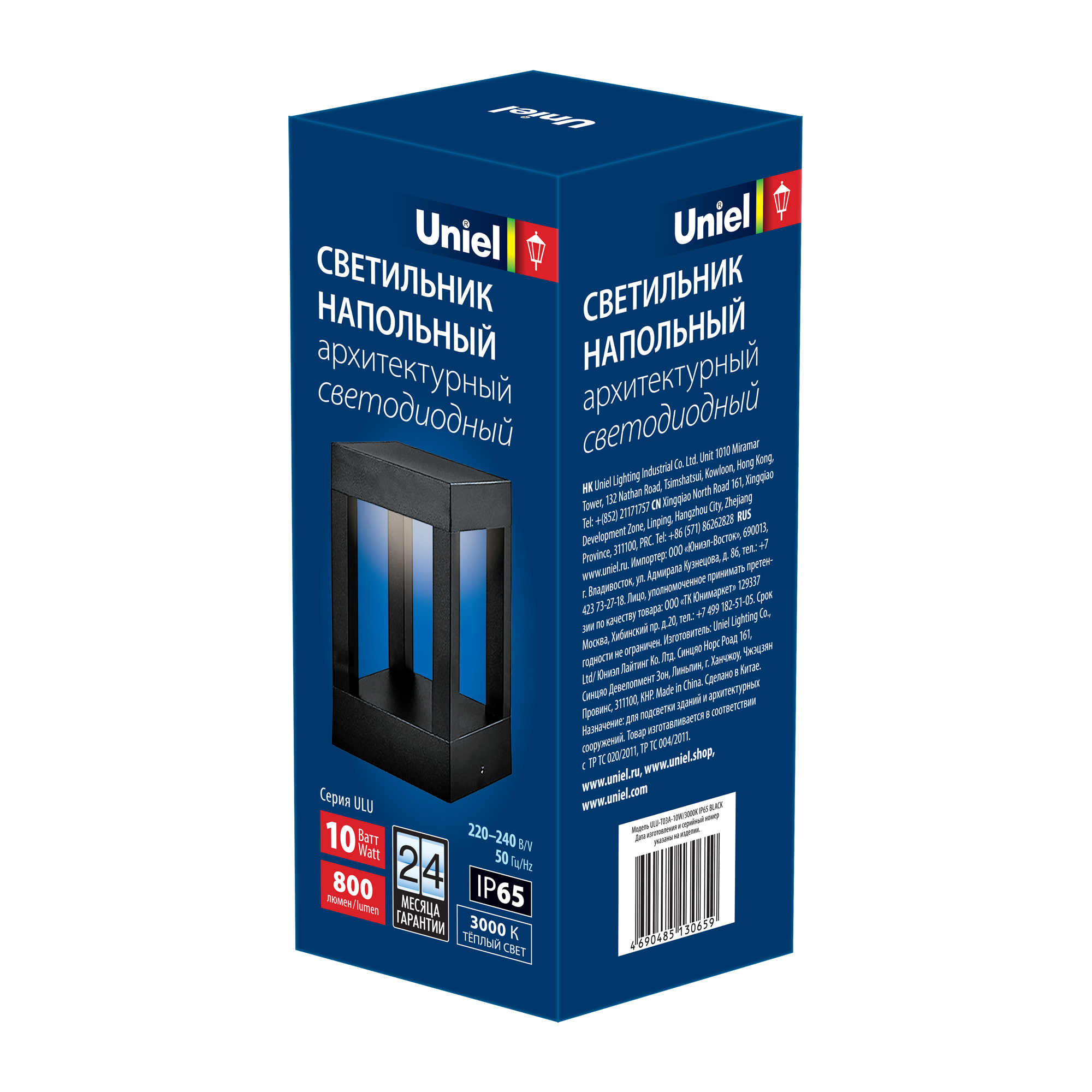 Светильник светодиодный уличный. Архитектурный напольный. ULU-T03A-10W/3000K IP65 BLACK Теплый белый свет (3000K). Корпус серый. TM ., код UL-00006815, производитель Uniel