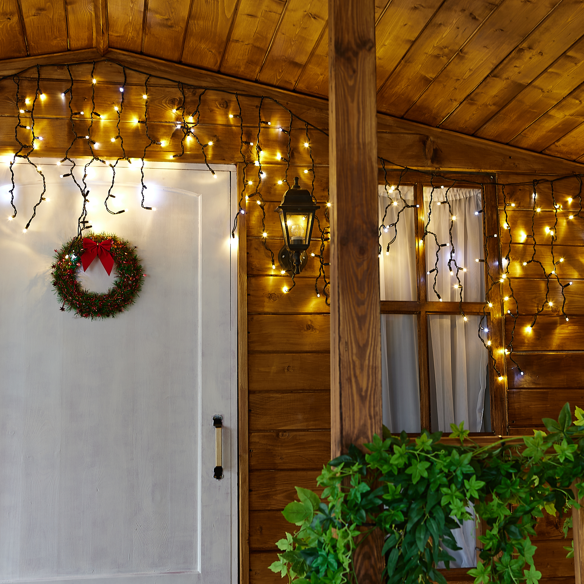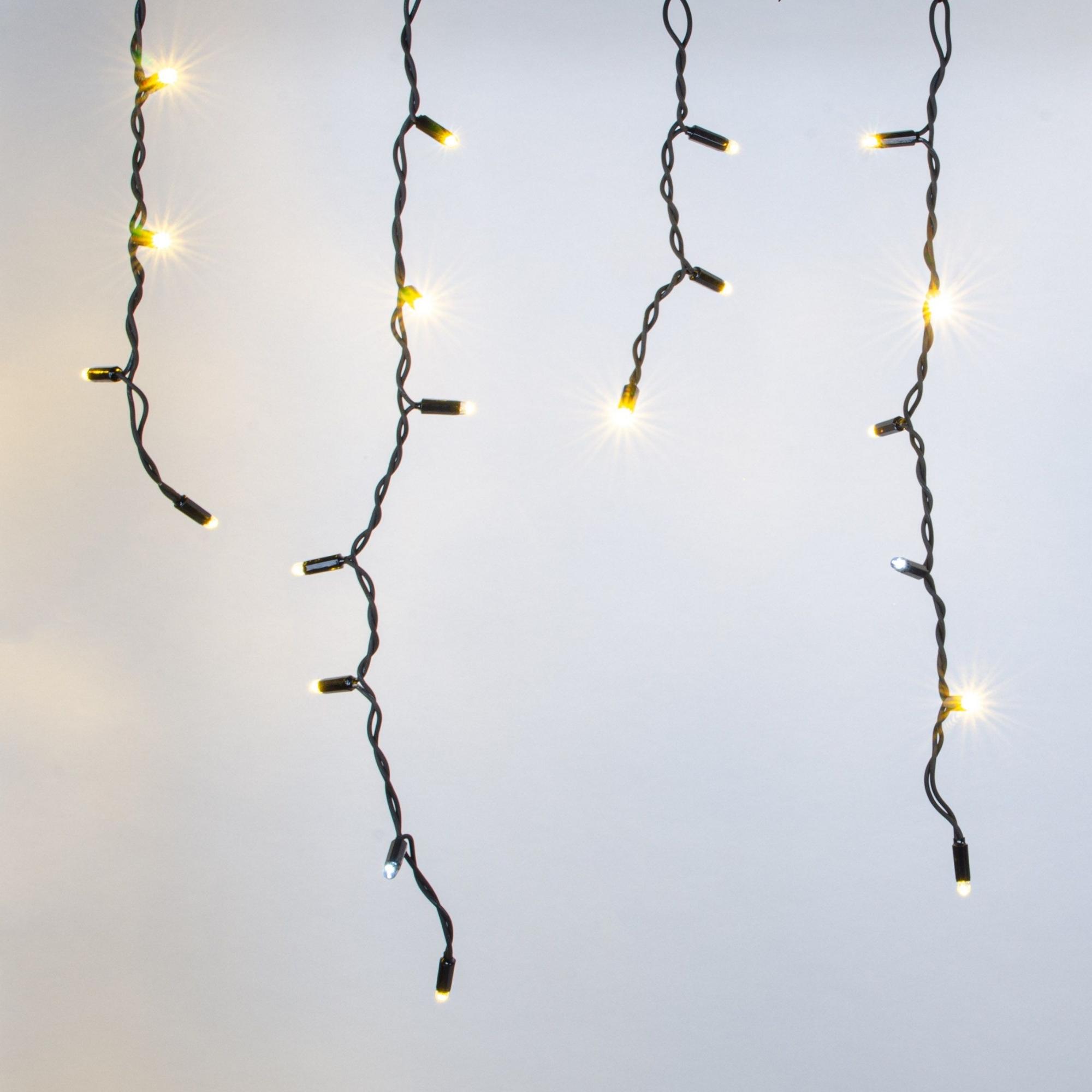Бахрома светодиодная с эффектом мерцания 3м Соединяемая 200 светодиодов Теплый белый и белый свет Провод черный ULD-B3007-200/TBK WARMWHITE-WHITE IP67 UL-00009924 Uniel