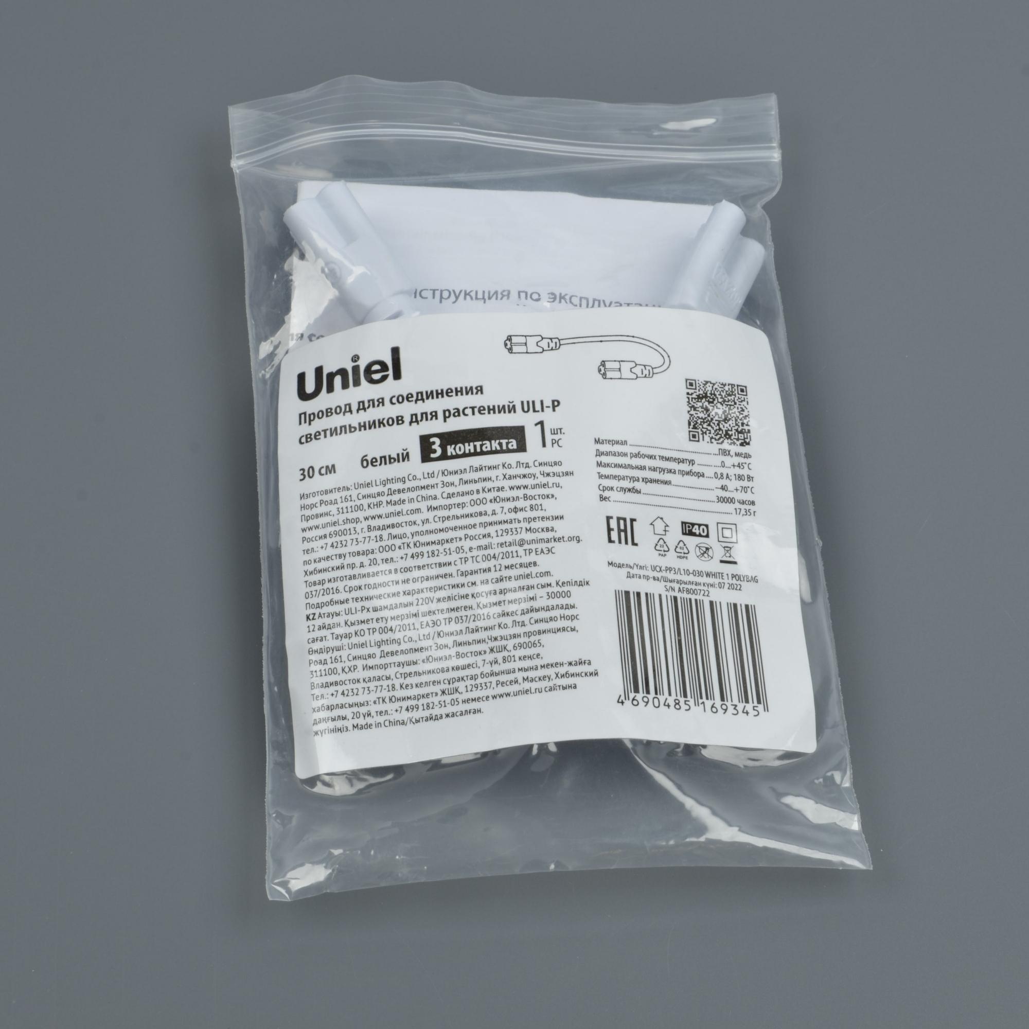 Провод для соединения светильников UCX-PP3/L10-030 для растений ULI-P 30 см 3 контакта WHITE 1 POLYBAG UL-00010072 Uniel