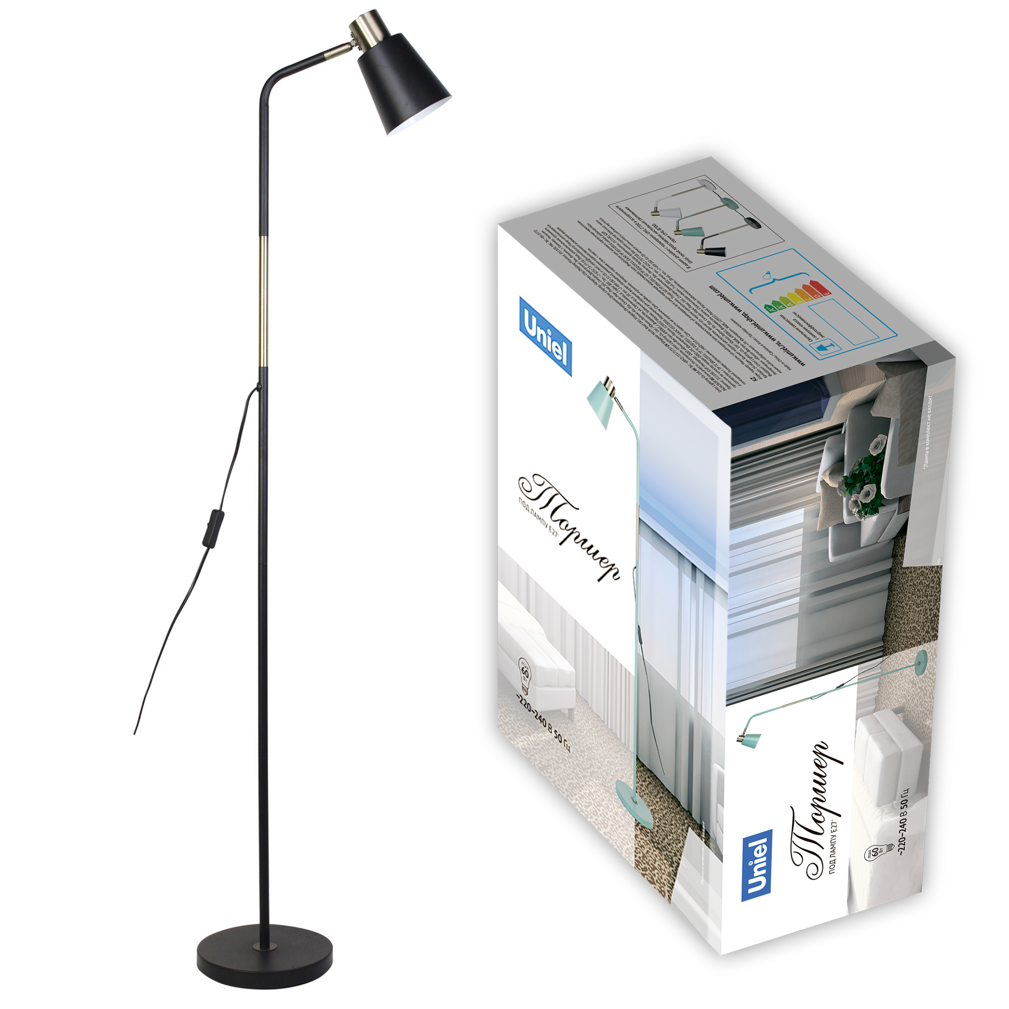 Торшер UML-T700 E27 BLACK напольный под лампу Е27 60W с регулировкой наклона Механический выключатель черный, код UL-00010185, производитель Uniel