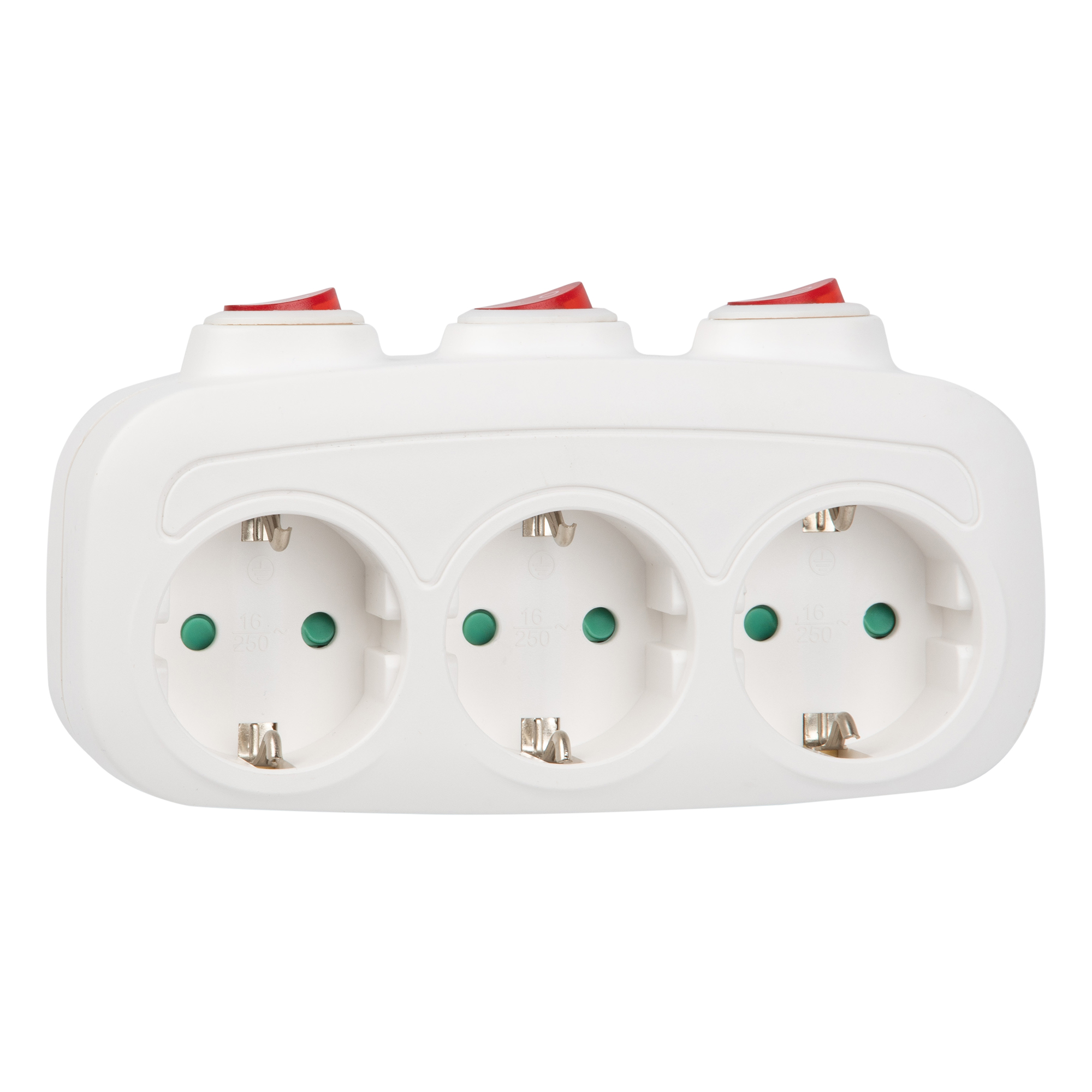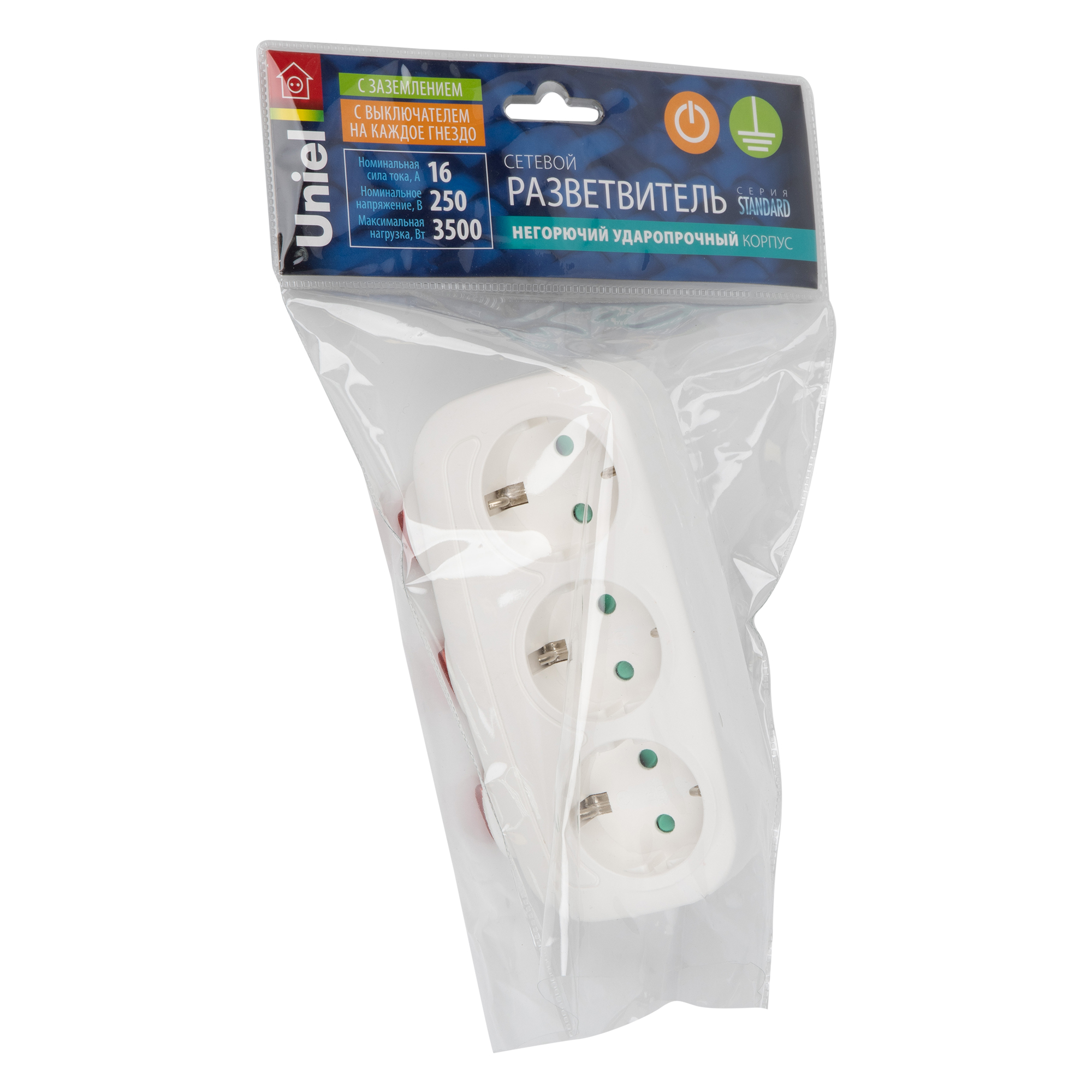 Разветвитель сетевой S-GES3-16OB WHITE с выключателем, с/з. 3 гнезда. 16А, 3500Вт. Белый. ТМ Uniel UL-00011239 Uniel