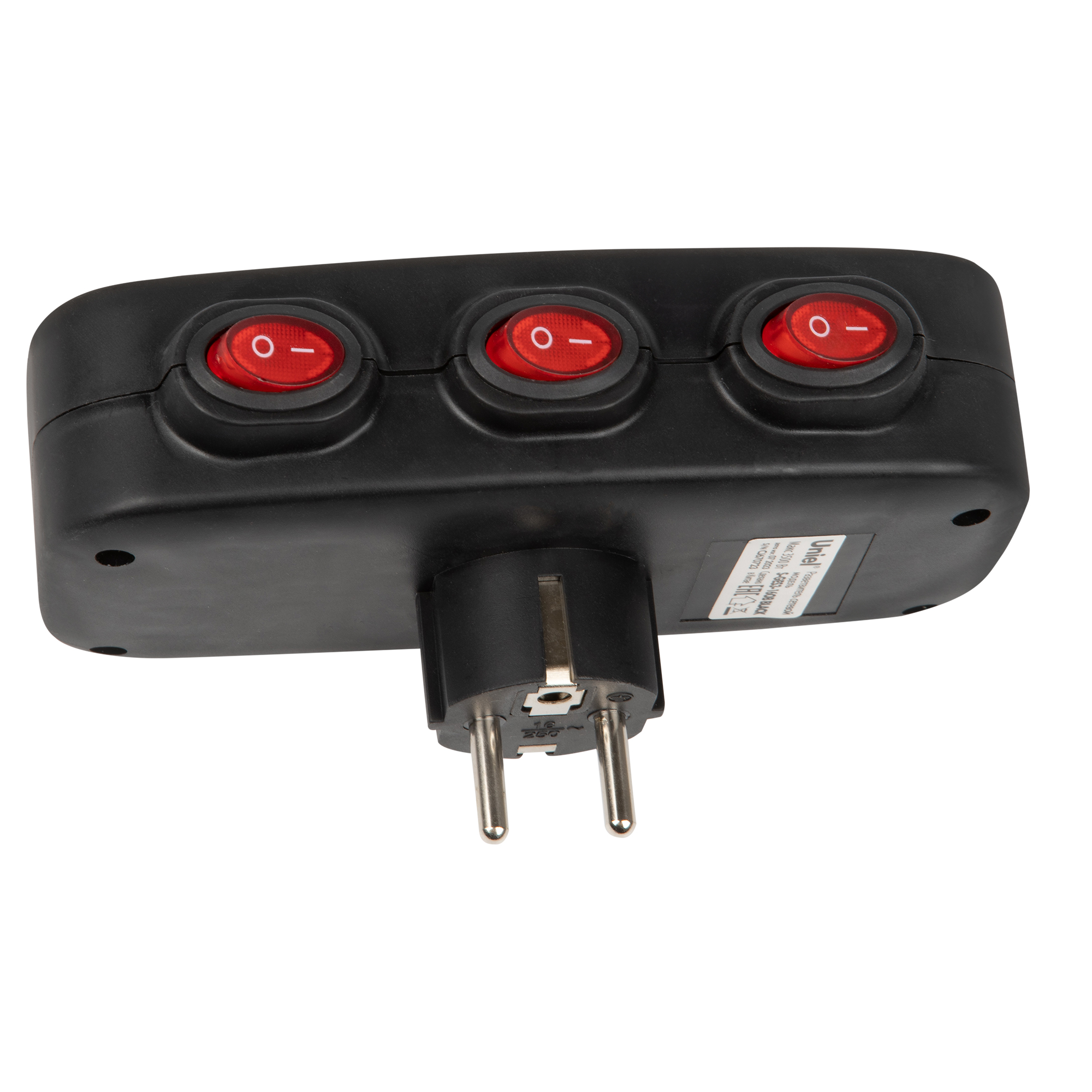 Разветвитель сетевой S-GES3-16OB BLACK с выключателм, с/з. 3 гнезда. 16А, 3500Вт. Черный. ТМ Uniel UL-00011240 Uniel