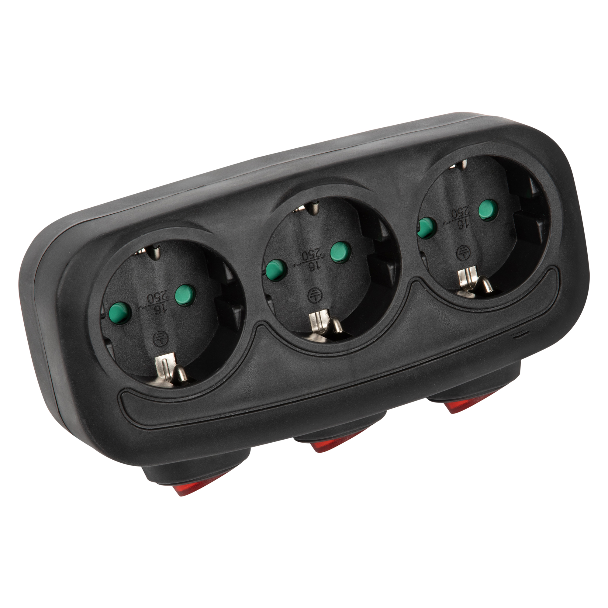 Разветвитель сетевой S-GES3-16OB BLACK с выключателм, с/з. 3 гнезда. 16А, 3500Вт. Черный. ТМ, код UL-00011240, производитель Uniel
