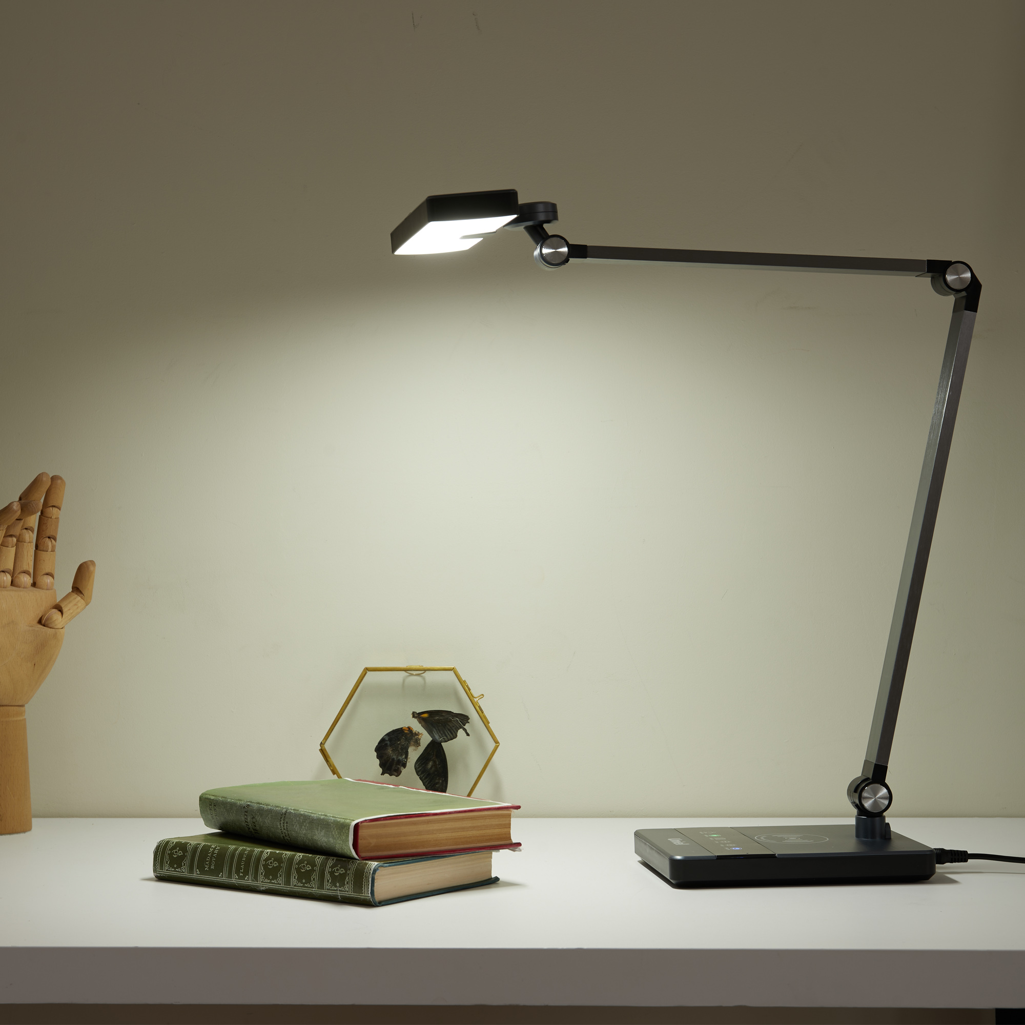 Светильник настольный светодиодный с беспроводной зарядкой телефонов.ULM-D110 15W-3000-6500K-DIM BLACK Сенсорный выключатель. Диммер. Черный. TM Uniel UL-00011288 Uniel