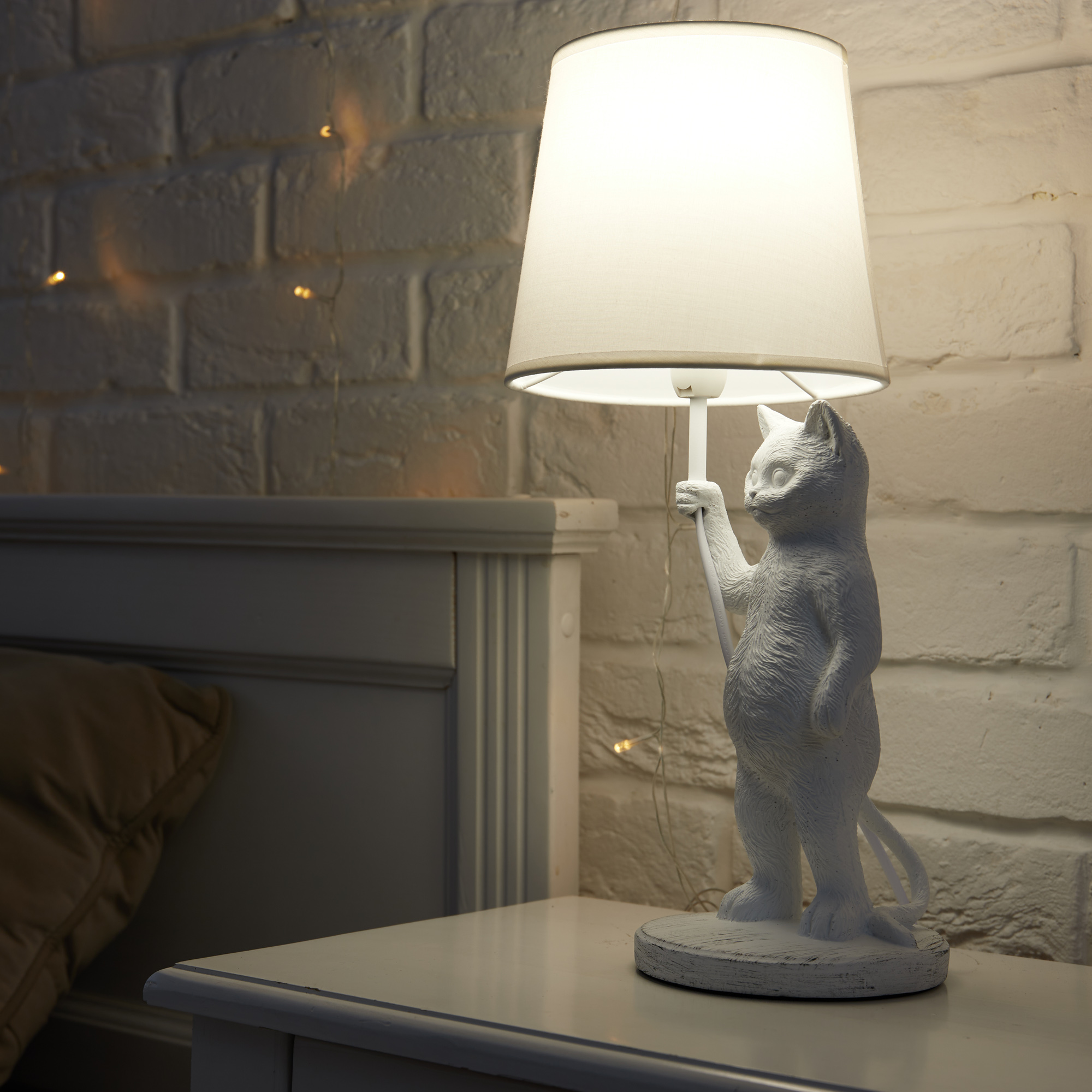 Светильник UML-B465 E14 WHITE настольный декоративный Кот, под лампу Е14, 40W. Механический выключатель. Белый UL-00011382 Uniel