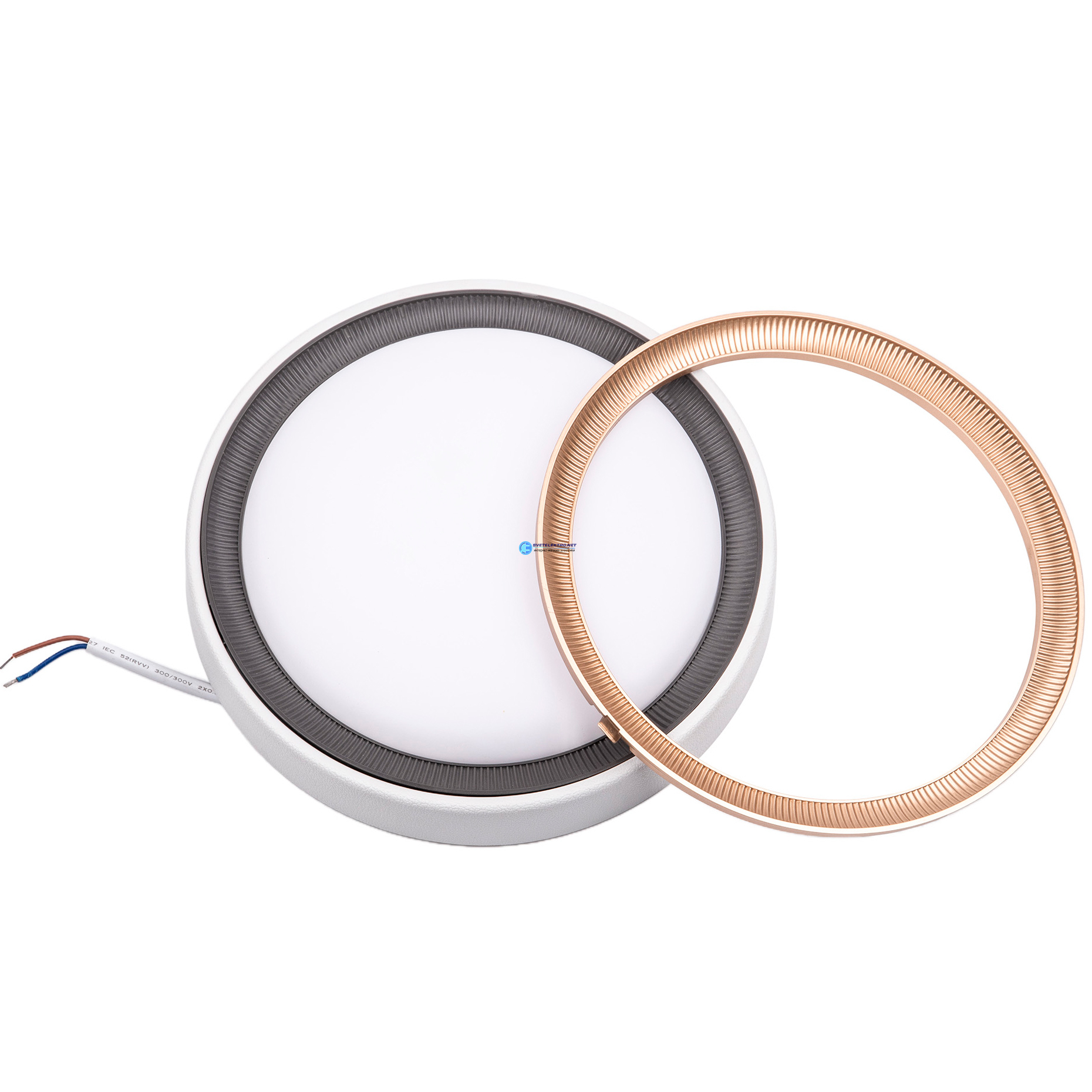 | Преимущества: | Две сменные рамки - золотистого и графитового цветов|Равномерное рассеивание без пульсации|Корпус из полипропилена, не поддерживающего горение: |