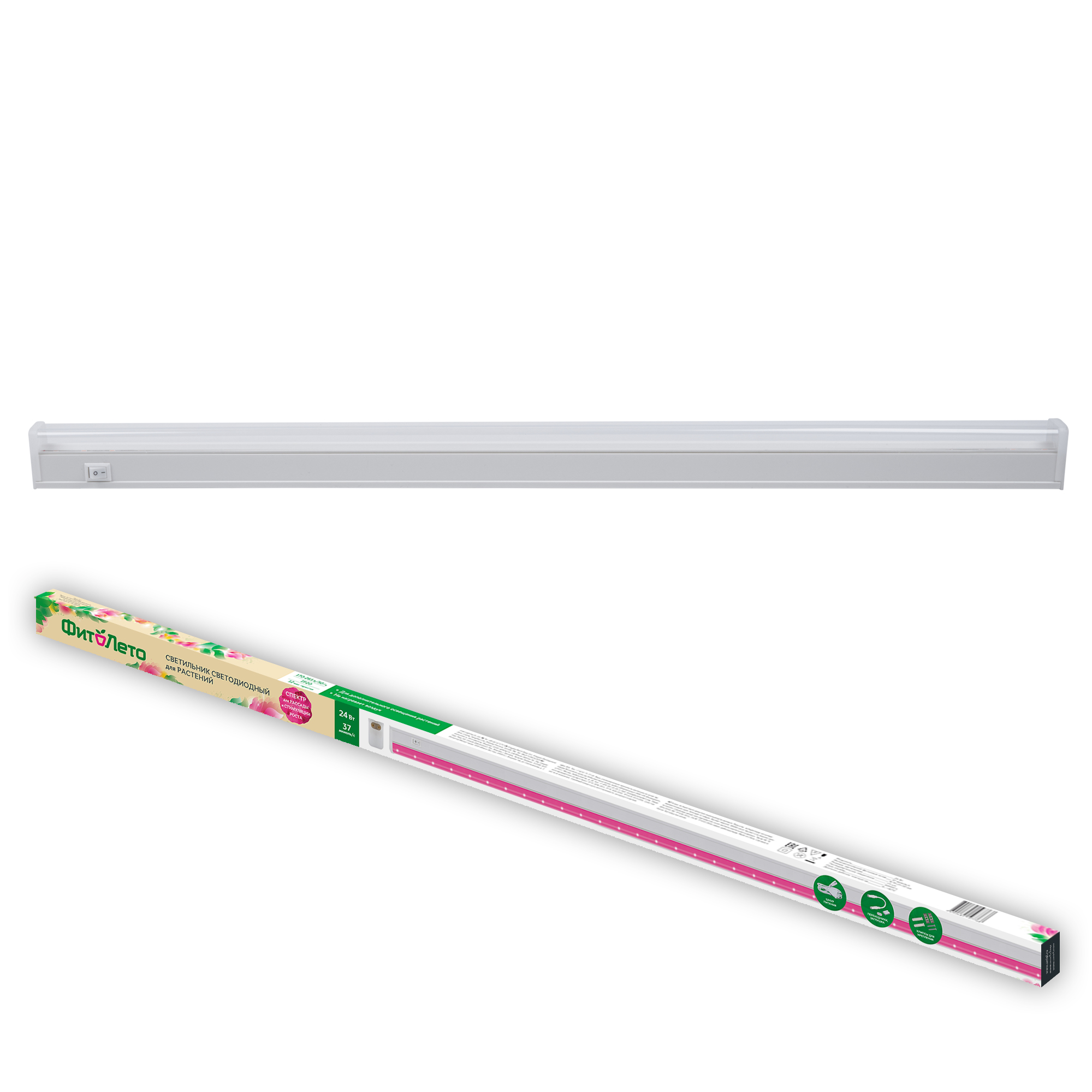 Светильник для растений светодиодный линейный 24 Вт 873 мм выключатель на корпусе пластик спектр для рассады и досвечивания в период роста ФитоЛето, код UL-00012366, производитель Uniel