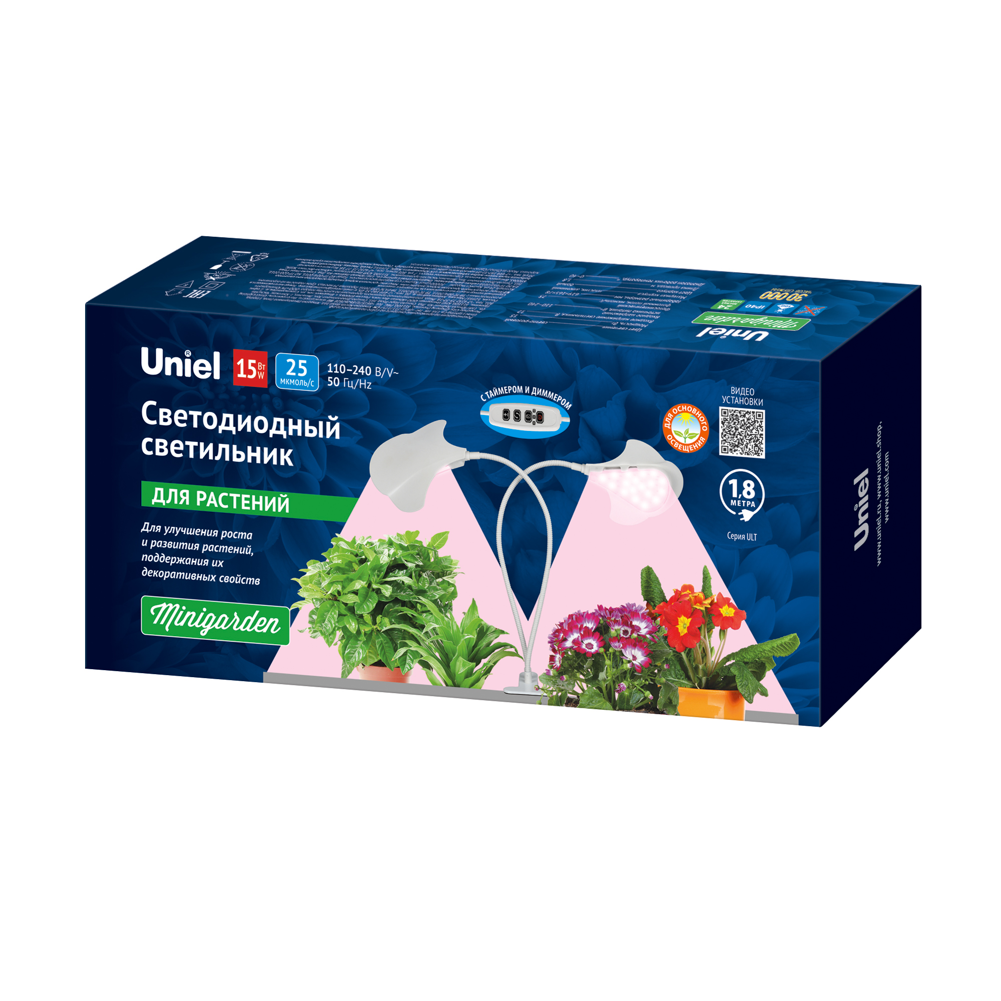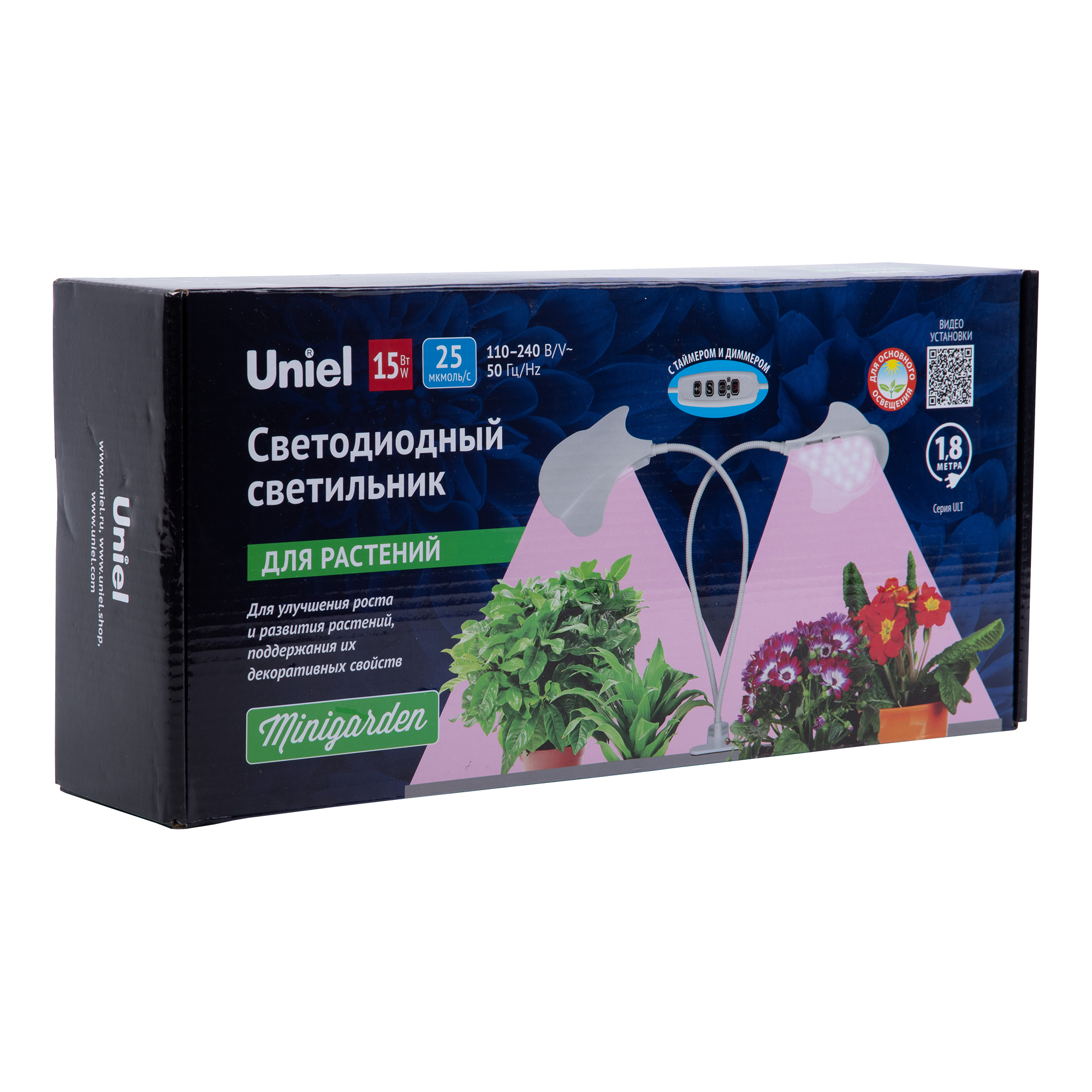 Светильник для растений светодиодный с таймером 15 Вт на прищепке спектр для фотосинтеза ULT-P35M-15W/SPLE/TM IP40 WHITE LEAF UL-00012580 Uniel