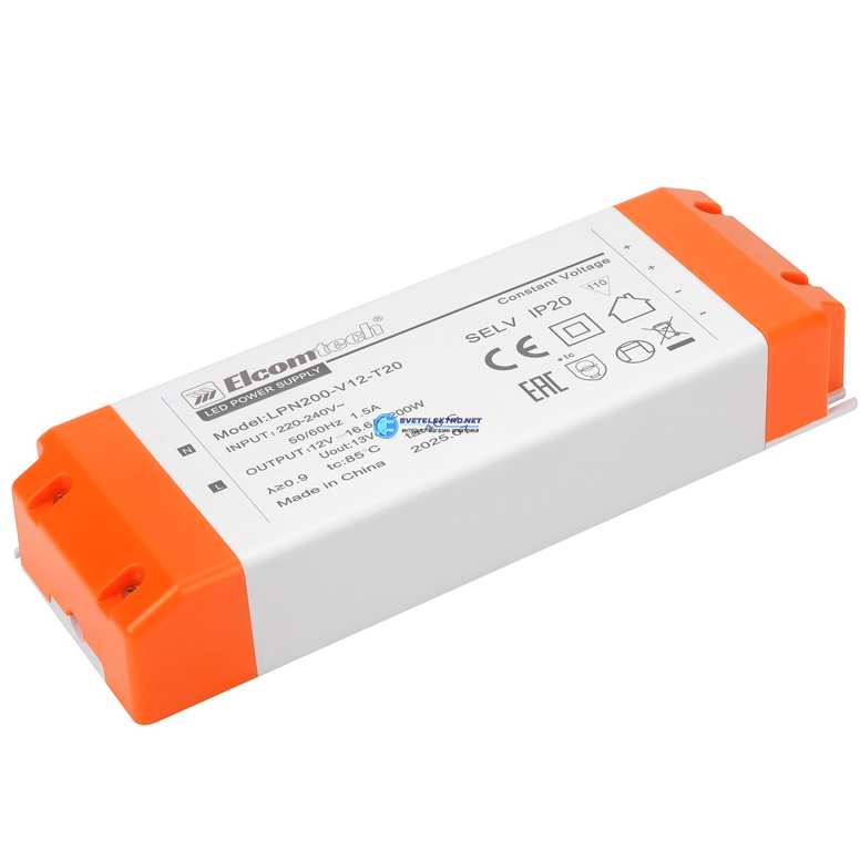 Драйвер LED 200W вход 220-240V, выход 12V 16,6 A LPN200-V12-T20, код УТ-00035251, производитель Elcomtech