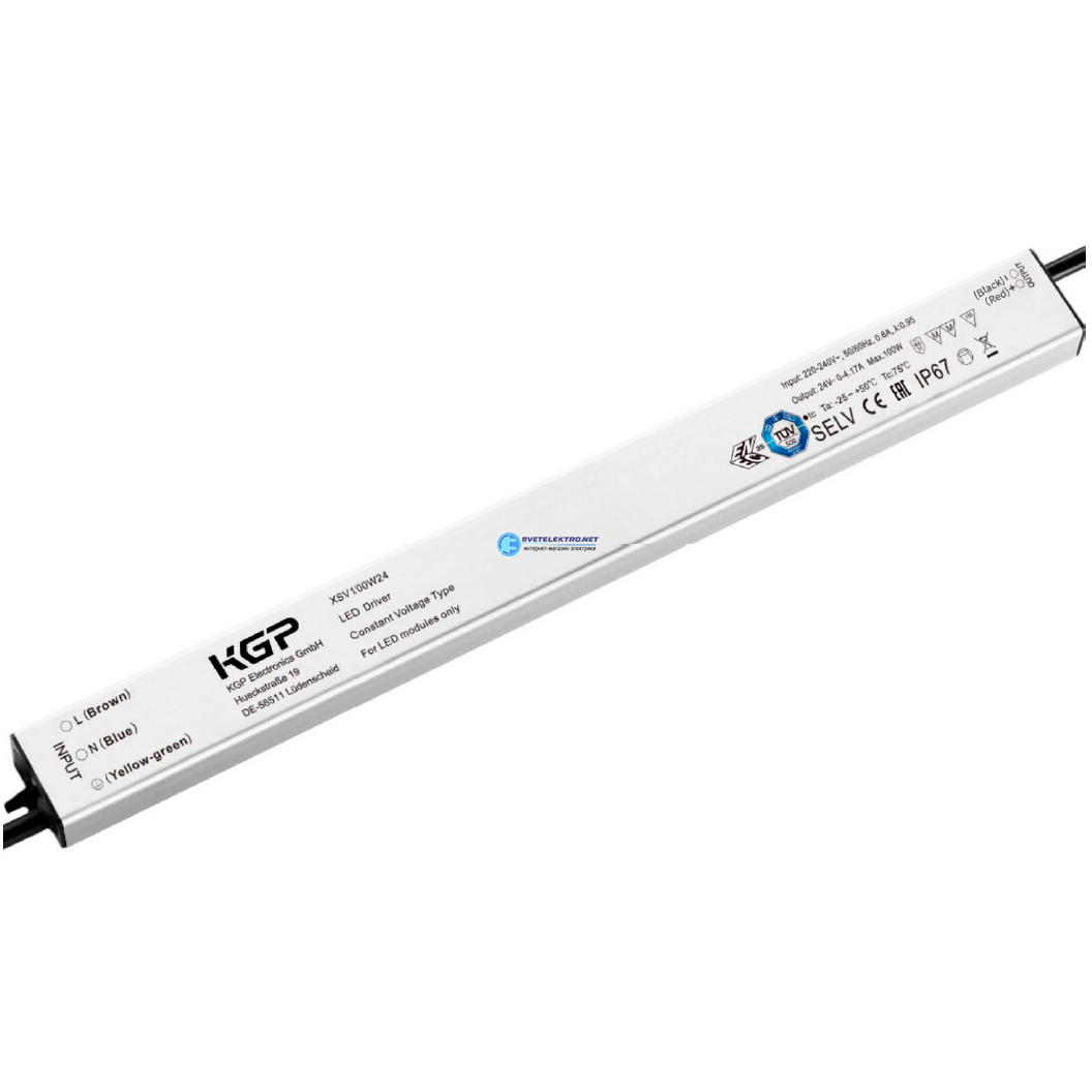 Блок питания AC-DC, 60Вт, IP67, вход 176…264В AC, 47…63Гц/175…280В DC, выход 48В/1.25А, изоляция 3000В AC, в корпусе 290х30х21мм, -25…+50°С, код XSV60W48, производитель KGP
