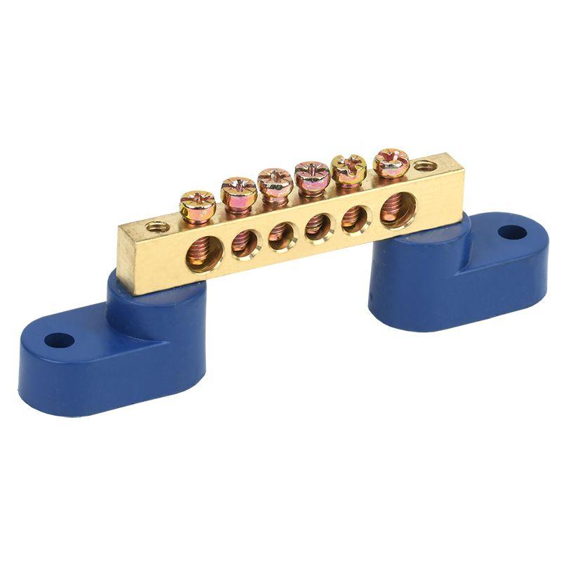 Шина ''N'' нулевая 6х9 мм на двух угловых синих изоляторах 6 групп 11-2325 REXANT