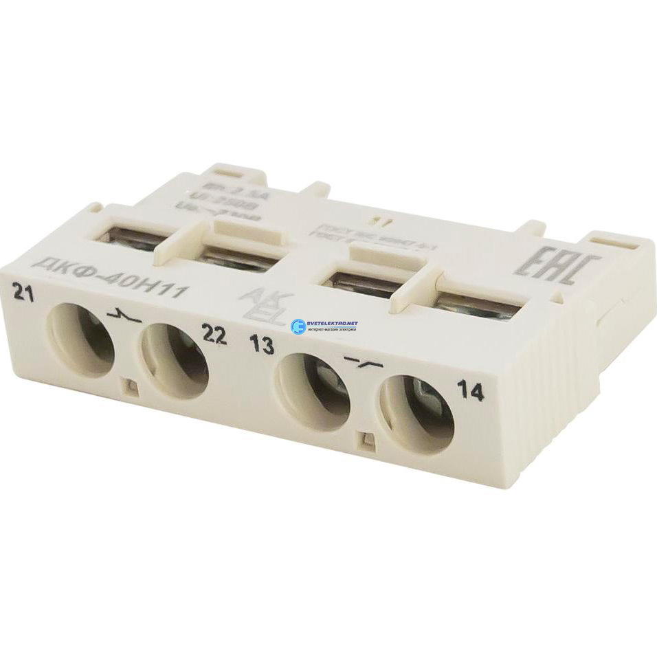 Контакт дополнительный выключателя защиты двигателя ВА47 ММС ДКФ КСС, 1НО+1НЗ, ММС-40Н Фронтальный AX 1NO+1NC 408735 АКЭЛ