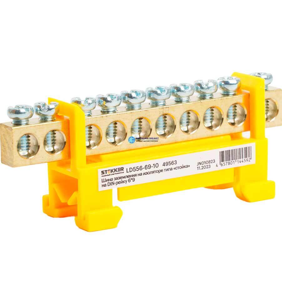 Шина PE на DIN-изоляторе 6x9 тип стойка 10 выводов желтый LD556-69-10, код 49563, производитель Stekker
