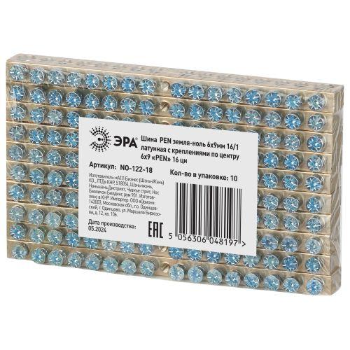 Шина NO-122-18 PEN земля-ноль 6х9мм 16/1 латунная с креплениями по центру, код Б0047232, производитель ЭРА