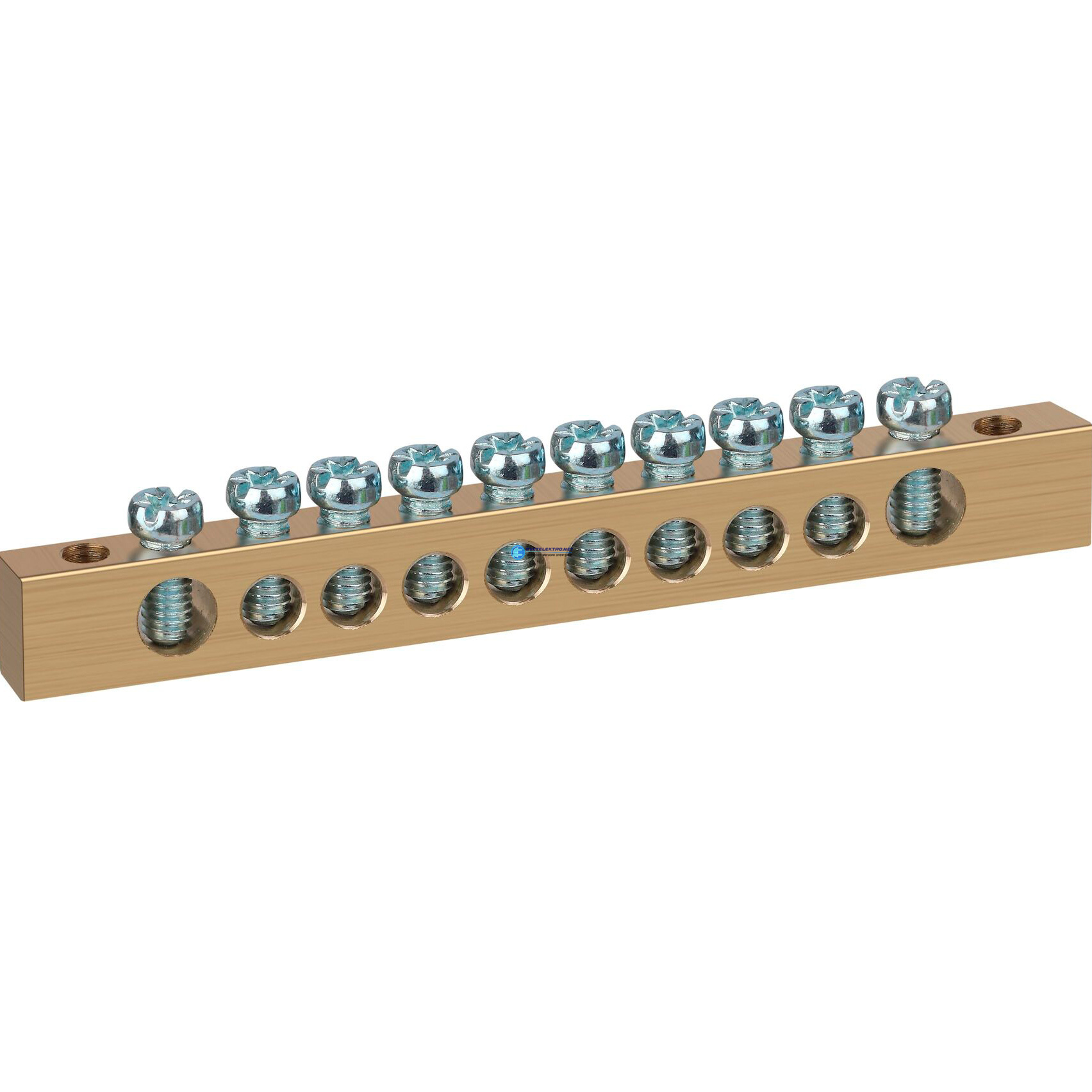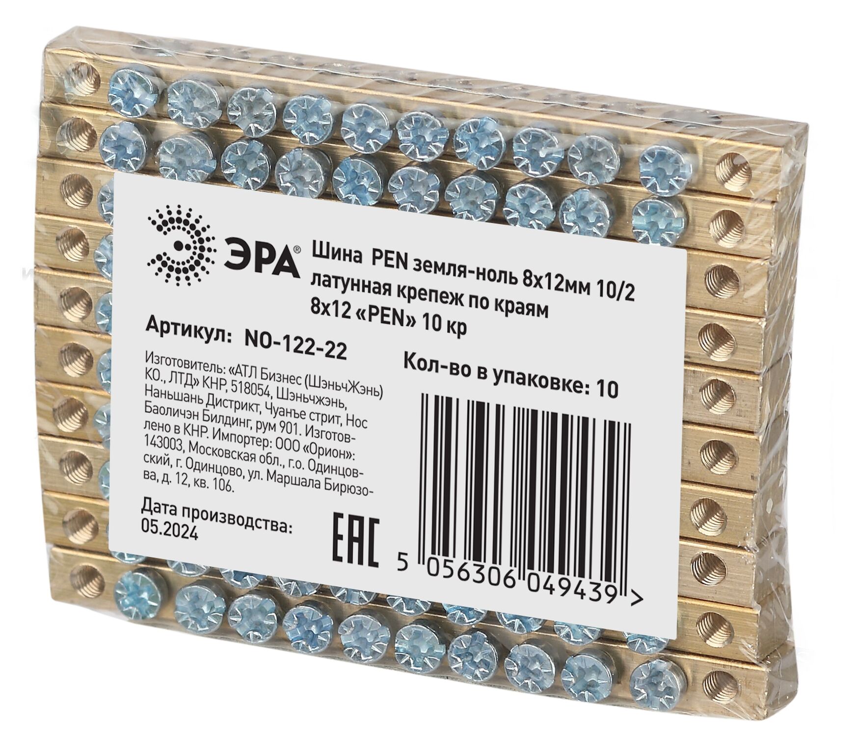 Шина NO-122-22 PEN земля-ноль 8х12мм 10/2 латунная крепеж по краям, код Б0047237, производитель ЭРА