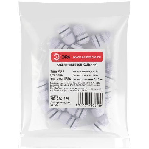 Ввод кабельный сальник NO-224-229 PG (d отв.13 мм / d провод.3-6.5 мм) IP54 (упаковка 20 штук), код Б0065175, производитель ЭРА