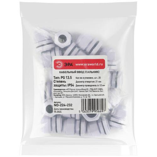 Ввод кабельный сальник NO-224-232 PG 13.5 (d отв.21 мм / d провод.6-12 мм) IP54 (упаковка 20 штук), код Б0065191, производитель ЭРА