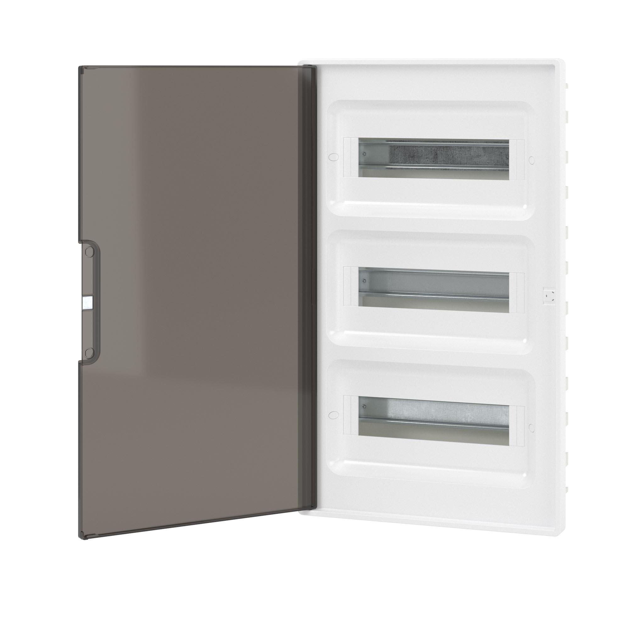 Щиток мод встраиваемый FRAME белый, с тонированной дверцей, с 4 шинами PEN (2шт на 8 отв. и 2шт на 10 отв.), код F36B1WD, производитель DKC