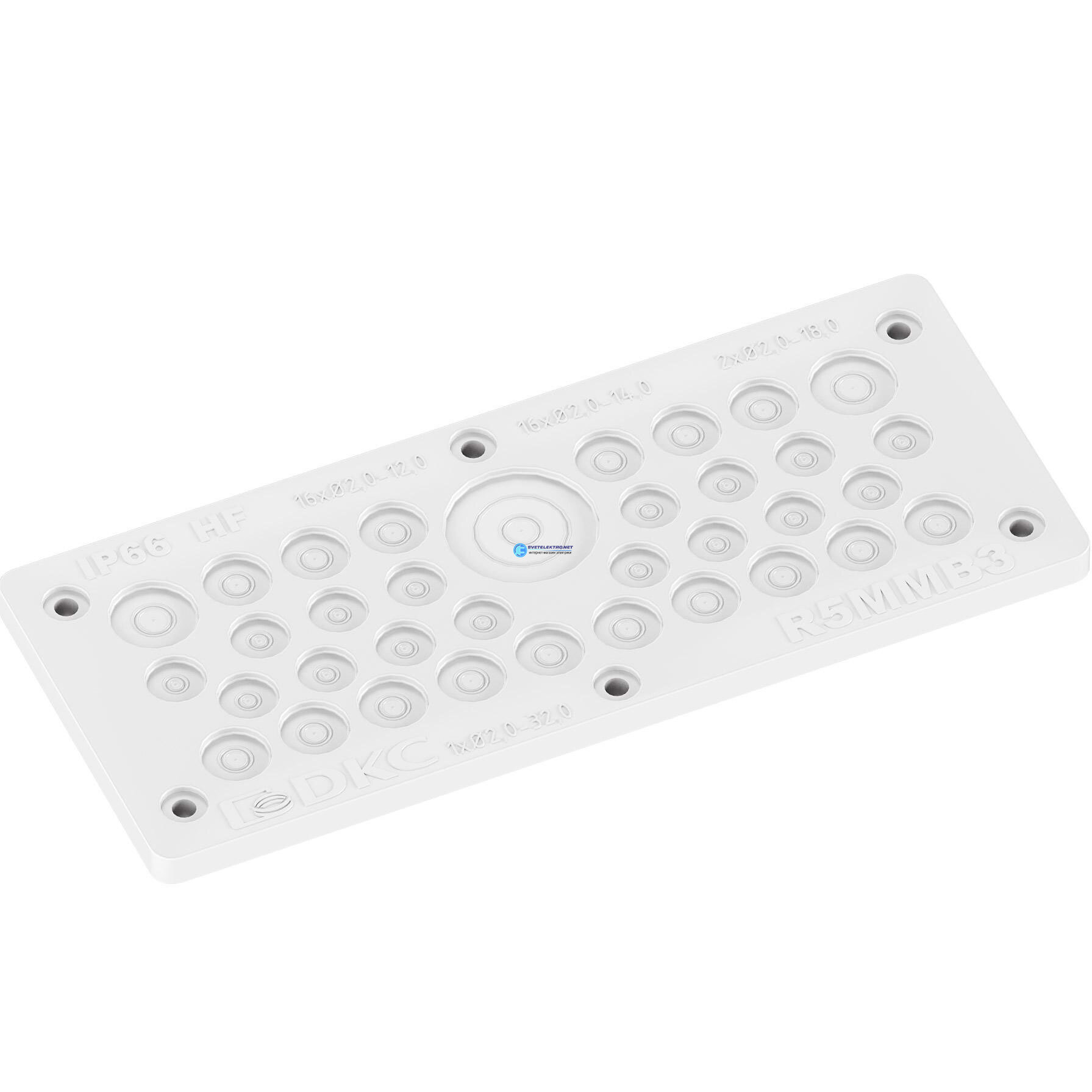Мембранный кабельный ввод, EPDM, IP66, t эксп. -70..+90, ШхВ 216х89 мм, 16x?2,0-12,0 мм, 16x?2,0-14,0 мм, 2x?2,0-18,0 мм, 1x?2,0-32,0 мм, код R5MMB3, производитель DKC