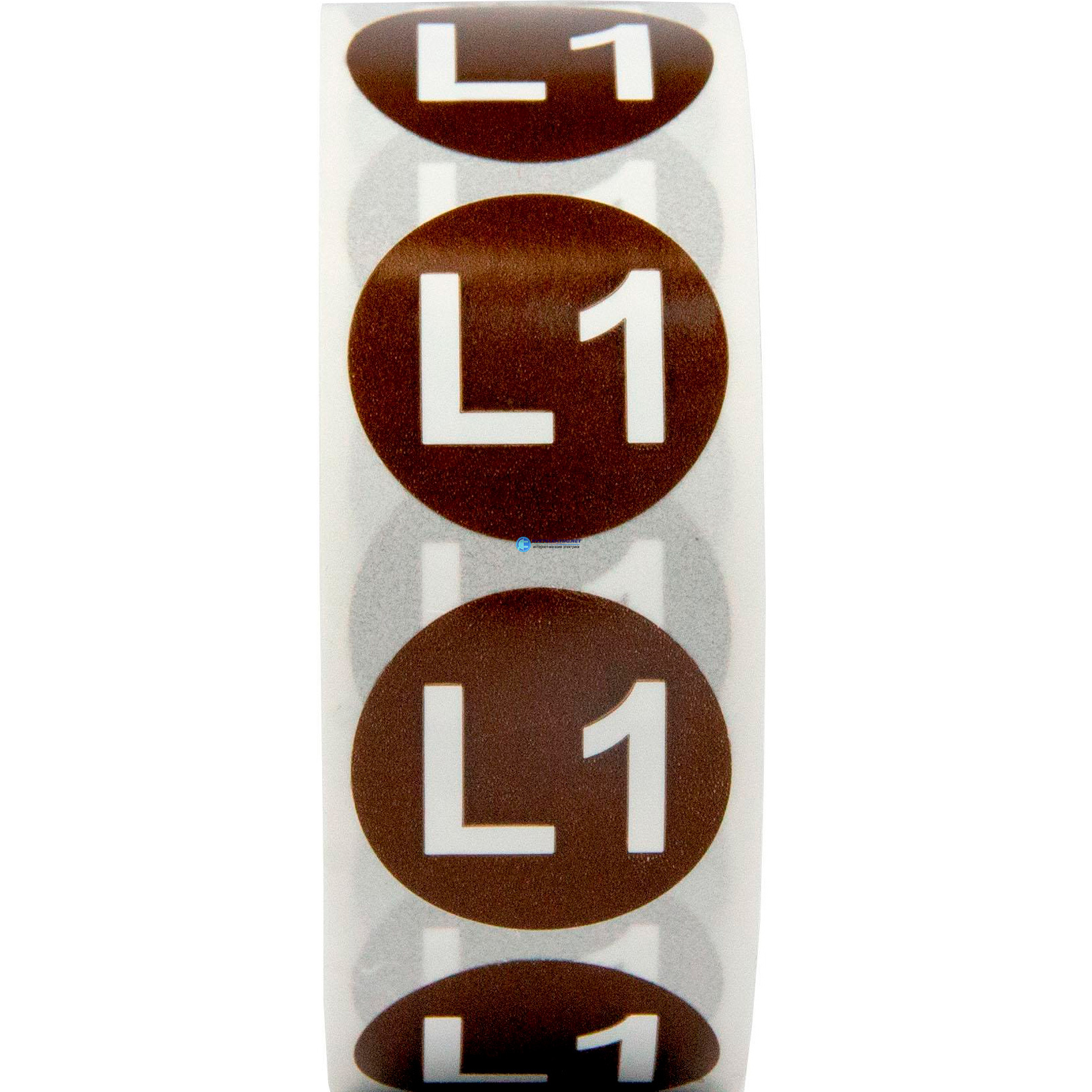 Маркировка электрических шин. Диаметр 20мм, круг. Цвет коричневый, символ "L1" белого цвета. Упаковка 500 шт., код SL-D20-L1-BR, производитель DKC