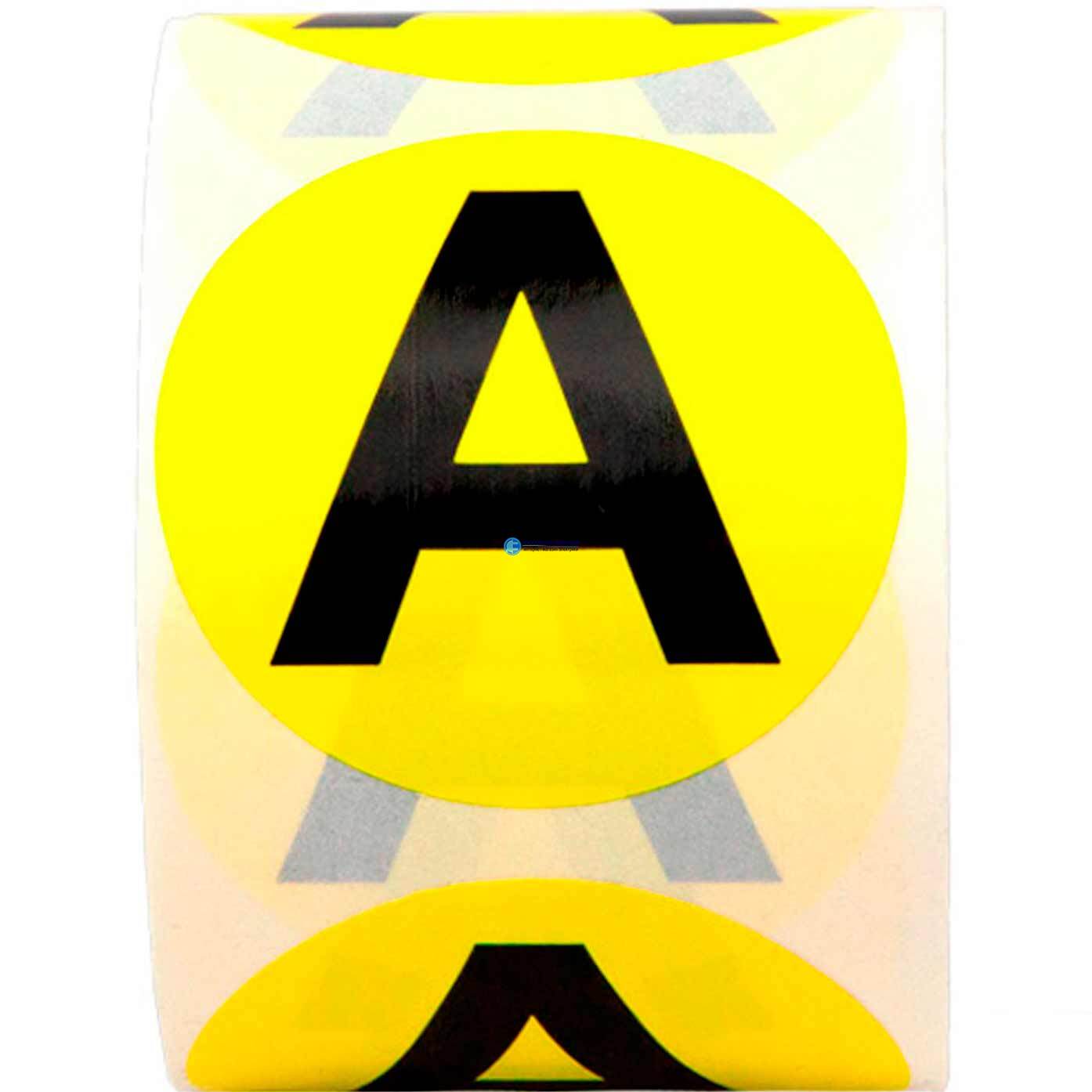 Маркировка электрических шин. Диаметр 40мм, круг. Цвет желтый, символ "А" черного цвета. Упак овка 500 шт., код SL-D40-A-YE, производитель DKC
