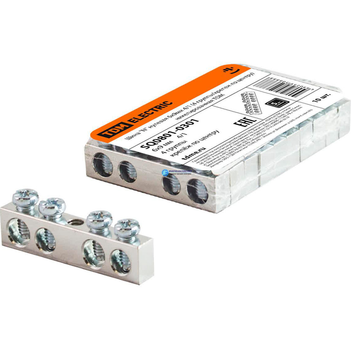 Шина ""N"" нулевая 6х9мм 4/1 (4 группы/крепеж по центру) никелированная TDM" SQ0801-0301 TDM