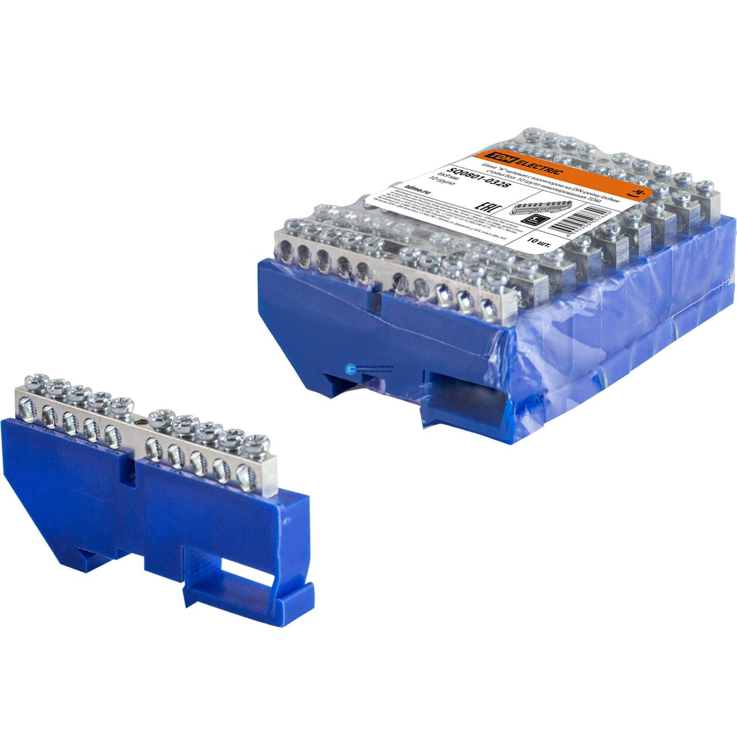 "Шина ""N"" нулевая с изолятором на DIN-рейку 6х9мм стойка бол. 10 групп никелированная TDM" SQ0801-0328 TDM